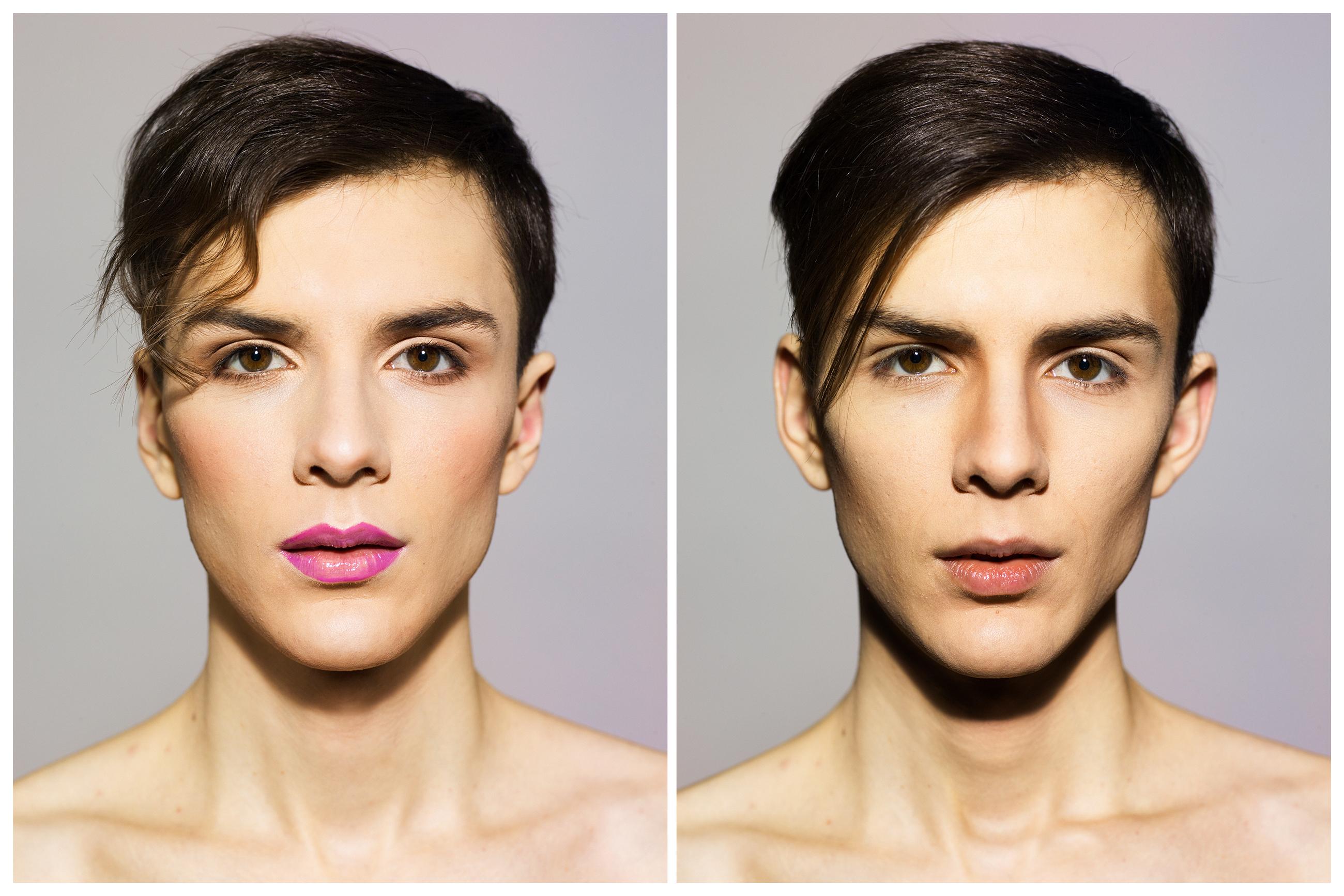 Apart from some retouches to either soften or accentuate the models’ Adam’s apple, no image was overly manipulated in post-production. Only the lighting, make-up and the subject’s facial expressions were used to convey gender. Our subjects were all friends. As we were working exclusively with non-professional models, it was a challenge to make sure the resulting images didn’t become too much of a caricature. The atmosphere on set was great and we were all committed to the seriousness of the project and its message.