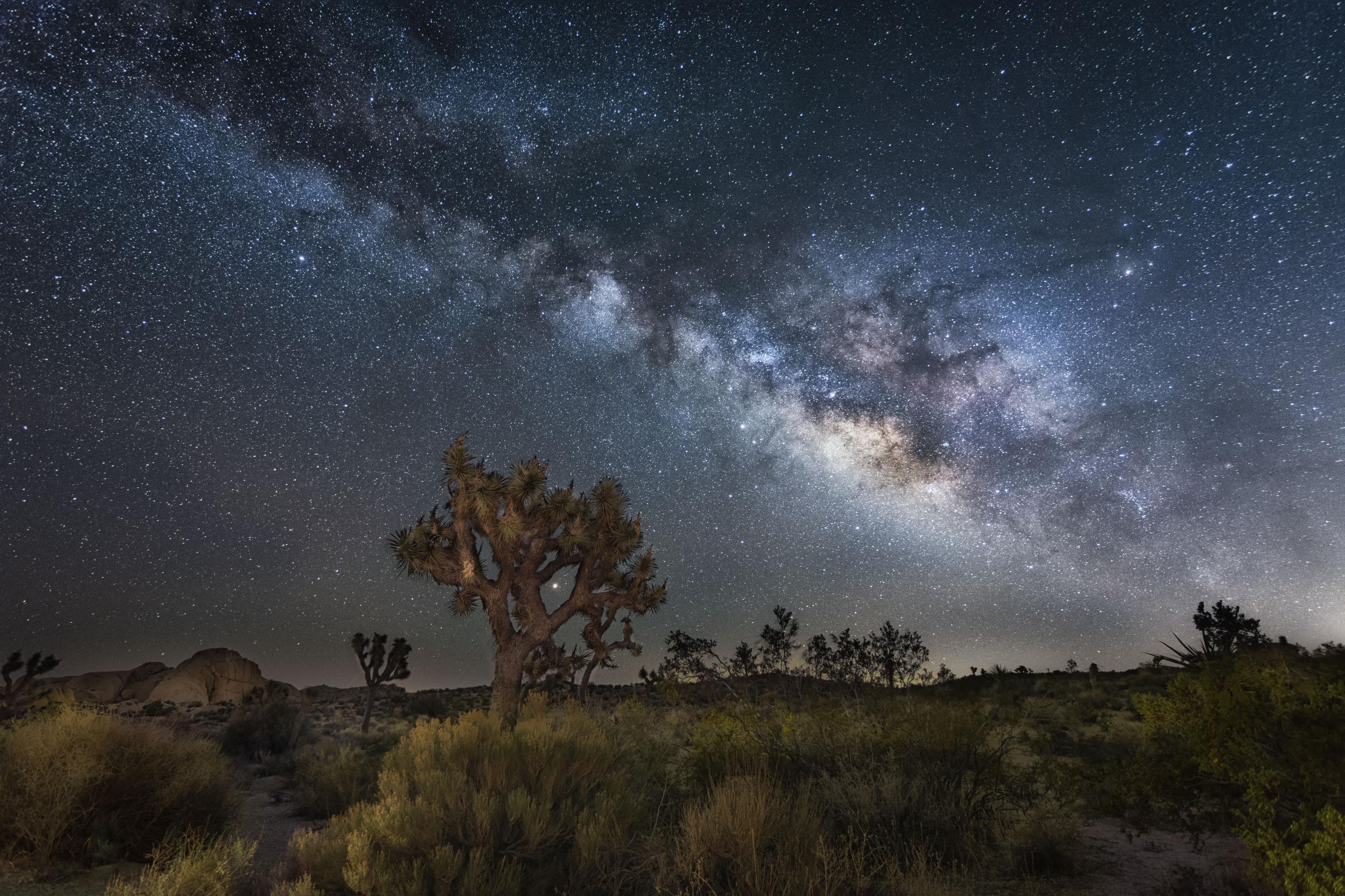 The easiest way would be to take two photographs and blend them together during post-processing. Take one image which exposes the sky and then another image to capture the details in the foreground – remember capturing the foreground usually requires a longer exposure than what’s needed to photograph the stars. The sky and foreground images must be taken without having moved the camera, so both images can be put together easily during post-processing. Another method would be to use a source of light so the foreground can be captured in the same image as the sky. The light source can be either artificial – such as a flashlight, speedlight or LED lights – or from a natural source like the moon or twilight.