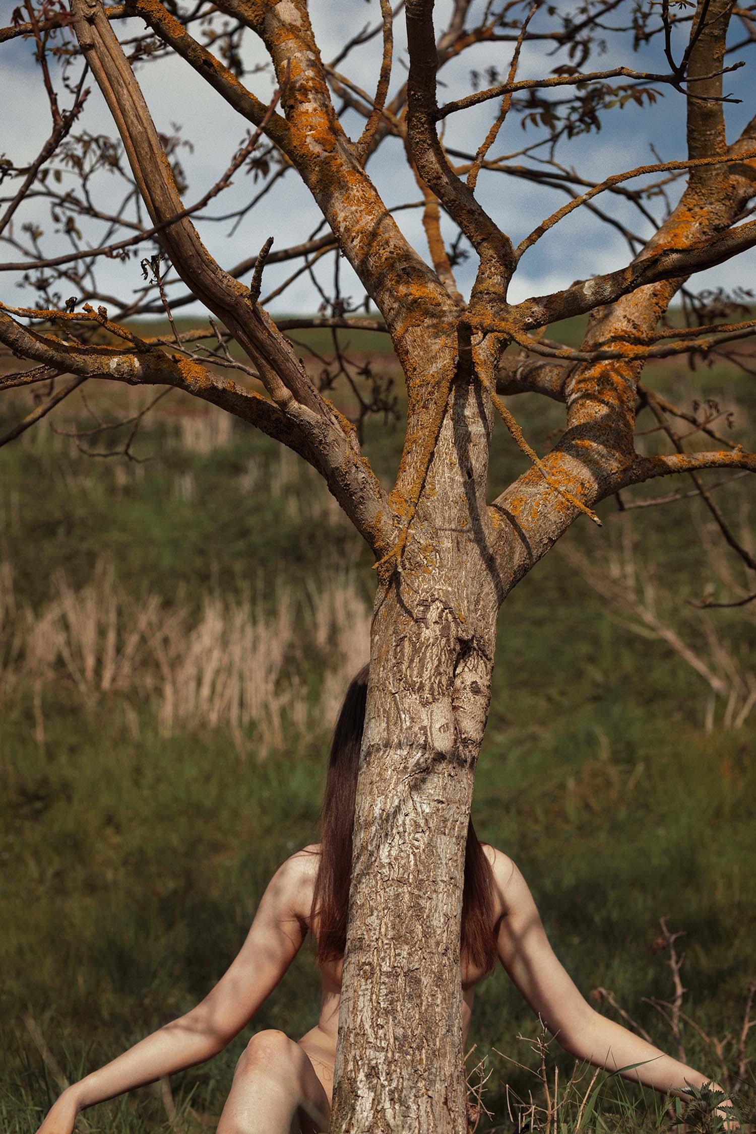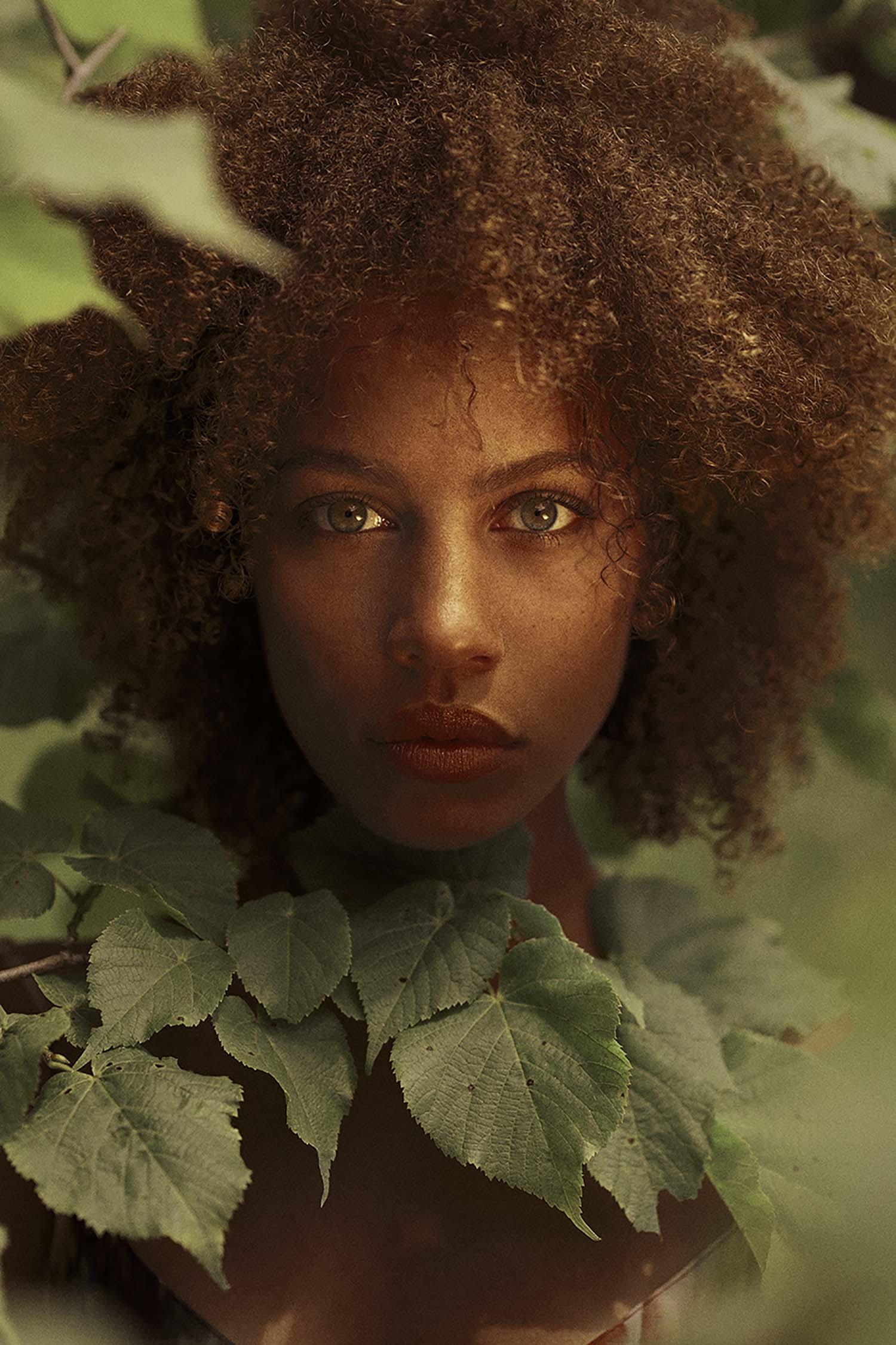 'Portrait of Adima' - I met Adima that day at the English garden in Munich, we went for a walk until we found a location next to the river which inspired me. It was around midday so the sun was very harsh, not an ideal time to shoot but for me, it was a chance to experiment with light settings. My goal was to create a warm feeling that resonates with the forest like atmosphere at that spot. After trying out many reflections this portrait was produced using natural daylight.