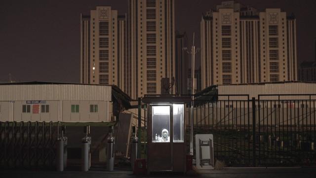 Firstly a series of images by Wu Yue, a young Chinese photojournalist and filmmaker. She has been exploring Wuhan since late Spring to produce a new film and photographic work about the impact of the virus on the local community. I feel the images have a real sense of both beauty and horror to them. For example, this image of a security worker, shut in a booth, wearing PPE and bathed in harsh artificial light (almost as though spot lit on a stage) who is very much alone. It seems a quiet moment of reflection amid the heroic task of helping to stop the disease spreading to the communities living in the high rise flats behind, and beyond.