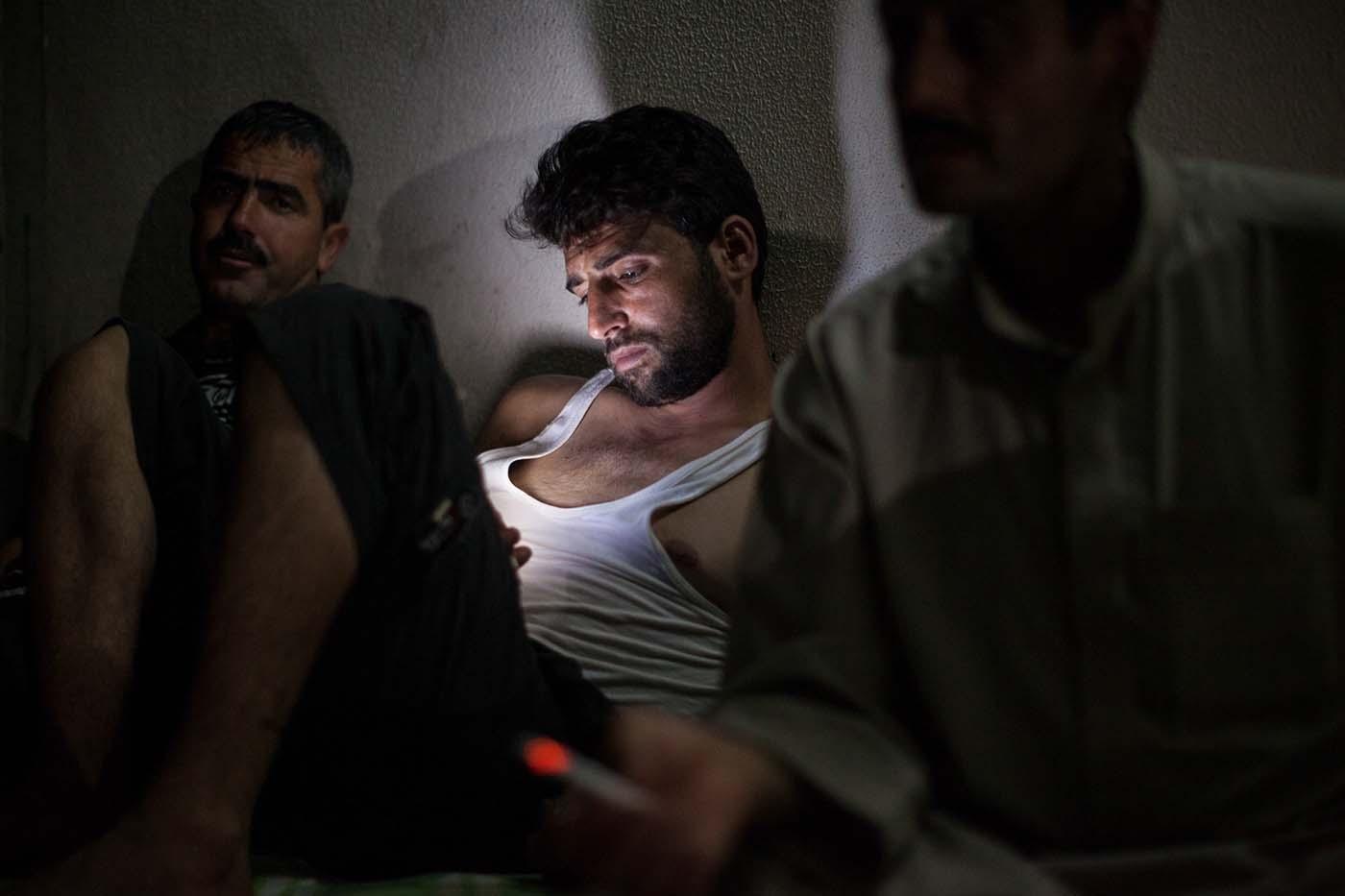 Siobhan: For instance, Liam Maloney’s Texting Syria is an immersive installation that shows back-lit portraits of Syrian refugees living in a slaughterhouse in Lebanon after having escaped the conflict in Homs. These are portraits of them at night, texting their family and friends who are still trapped in Homs. But alongside the portraits, Liam presents the actual text messages, translated into English. These text messages are included into the exhibition in two ways: a selection of them are shown on a monitor, so that you can read them side by side to the portraits, and there is also a phone number you can dial to start receiving those messages on your phone. To interact with the work on a level that intimate, to have your own phone ring or buzz with a life or death message, is a powerful emotional experience.