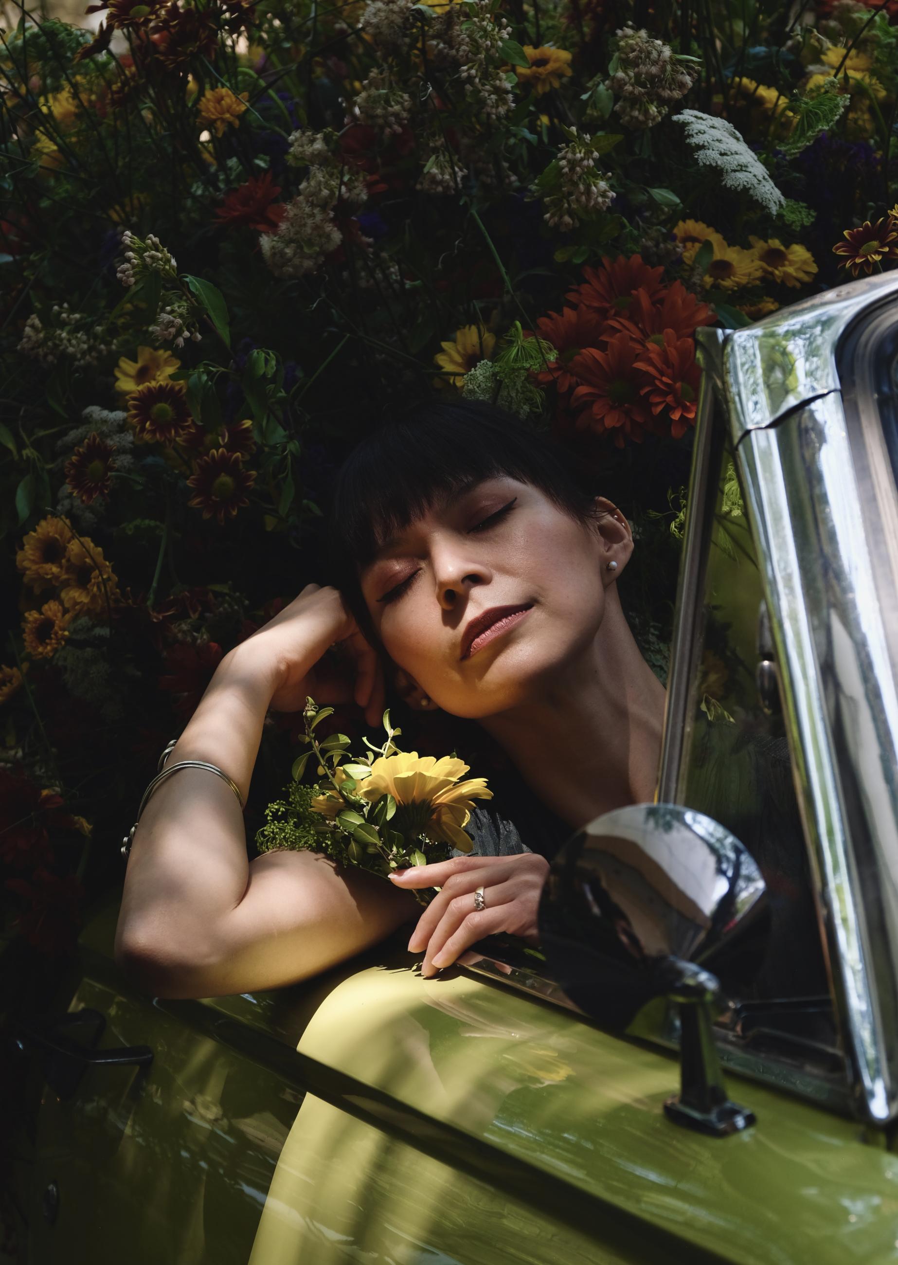 This image was taken in Mexico City in April 2022. We were walking along the street when we saw this beautiful old car full of flowers and took the opportunity to use it in a photoshoot.