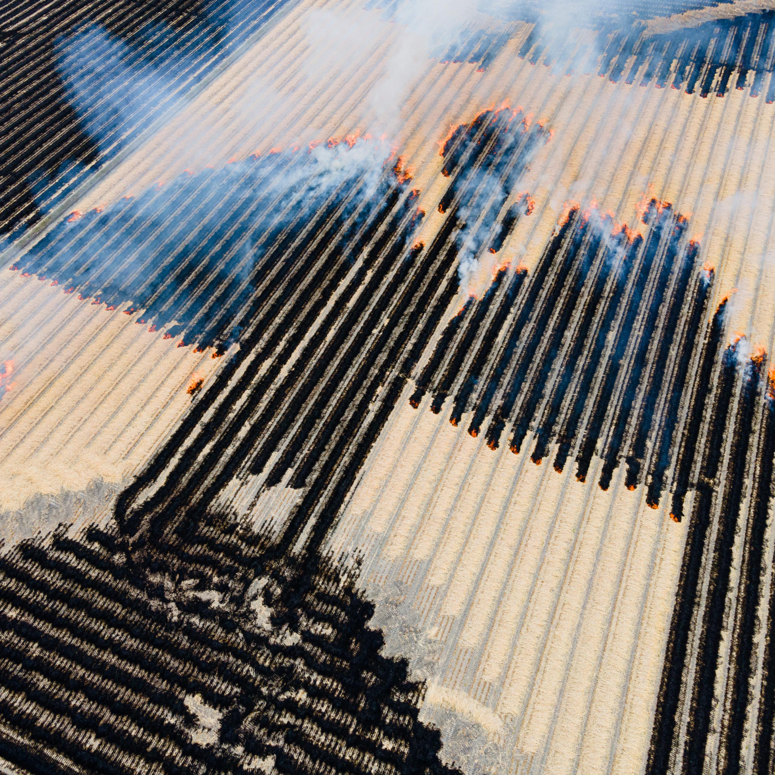 After the harvest, the farmers in my hometown burn the straw back to the soil. From the air, this burning wheat field looks like a phoenix.
