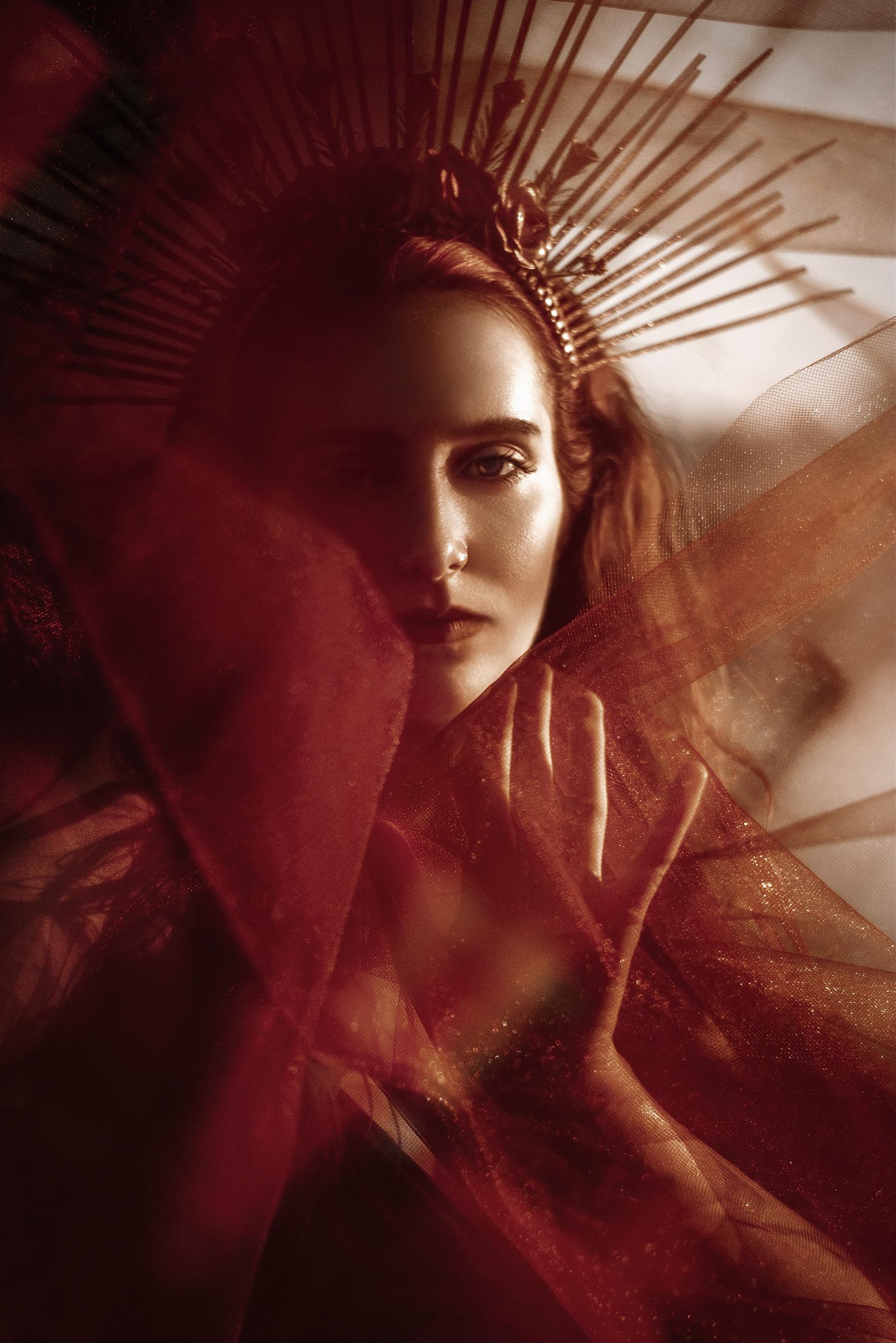 To create this photograph I positioned my model behind a piece of broken glass, which was illuminated by a red LED strip.