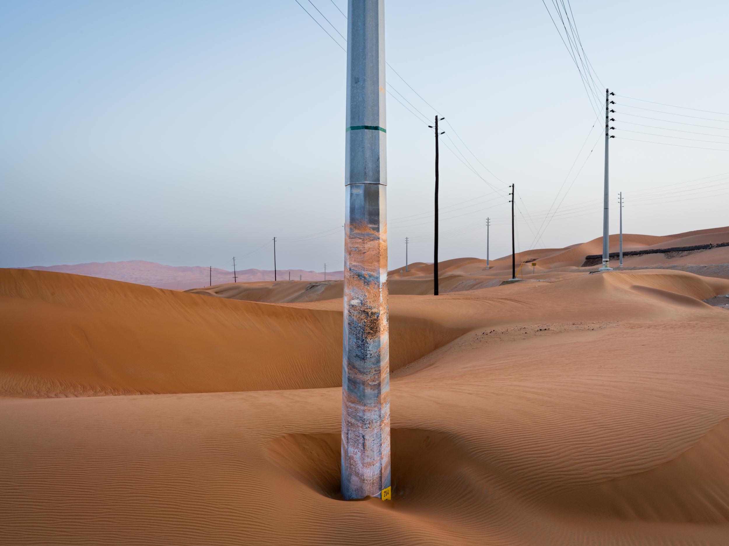 Infrastructure being eroded by the wind and sand. There is plenty of development happening in Saudi Arabia, but the erosion on poles like this is a reminder that the desert will eventually reduce everything back to sand.