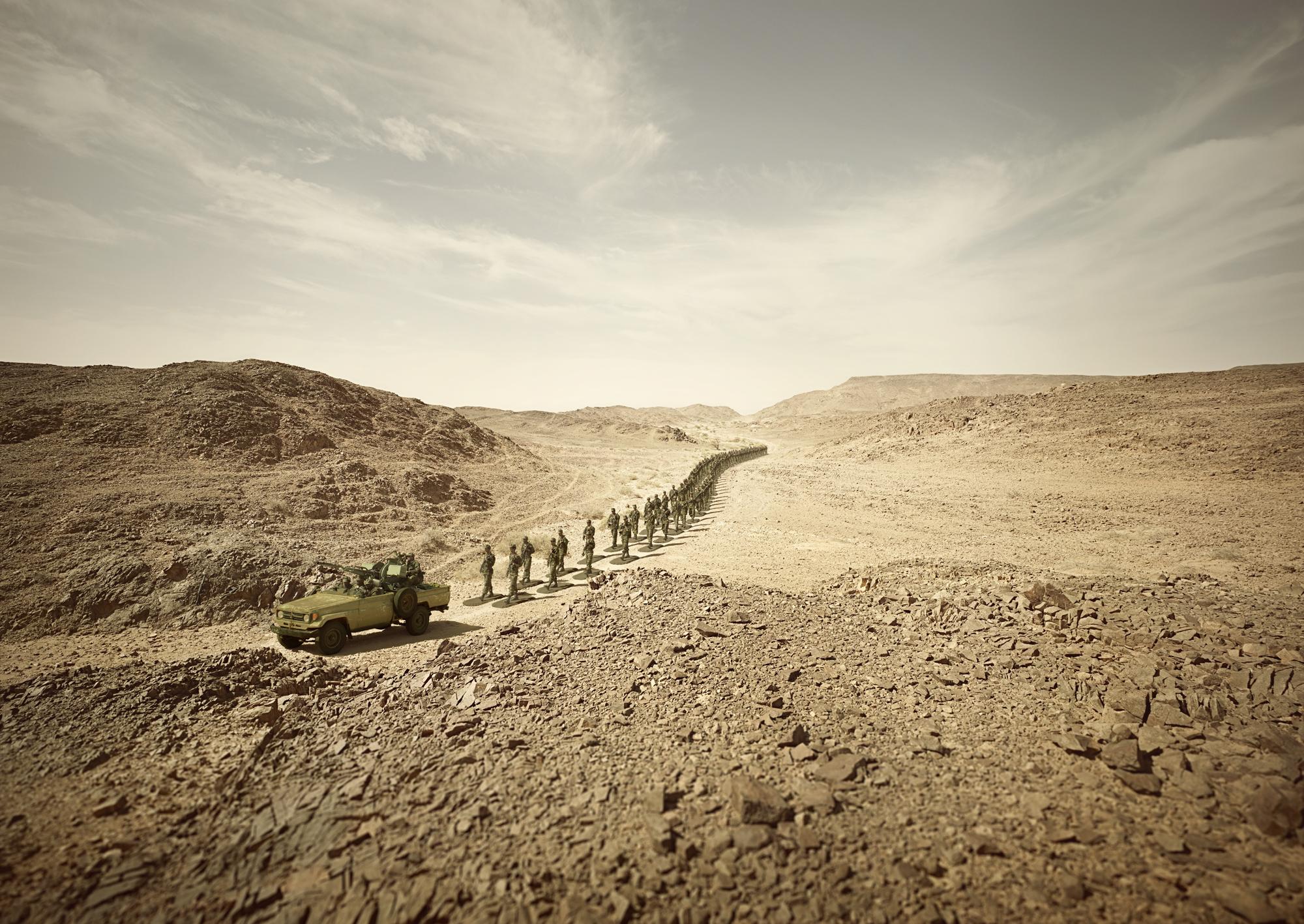 'Toy Soldiers' is a multi facetted allegory of modern warfare, it's narrative investigates the impact and psychological consequences of the invisibility and the de-humanising effects of war. It explores the paradigm of post colonial conflict and through our cultural notions of freedom, nationhood and entertainment, 'Toy Soldiers' attempts to create a dialogue via the viewing of modern conflict as war games seen through the conflict in Western Sahara, know as "Africa’s last colony".