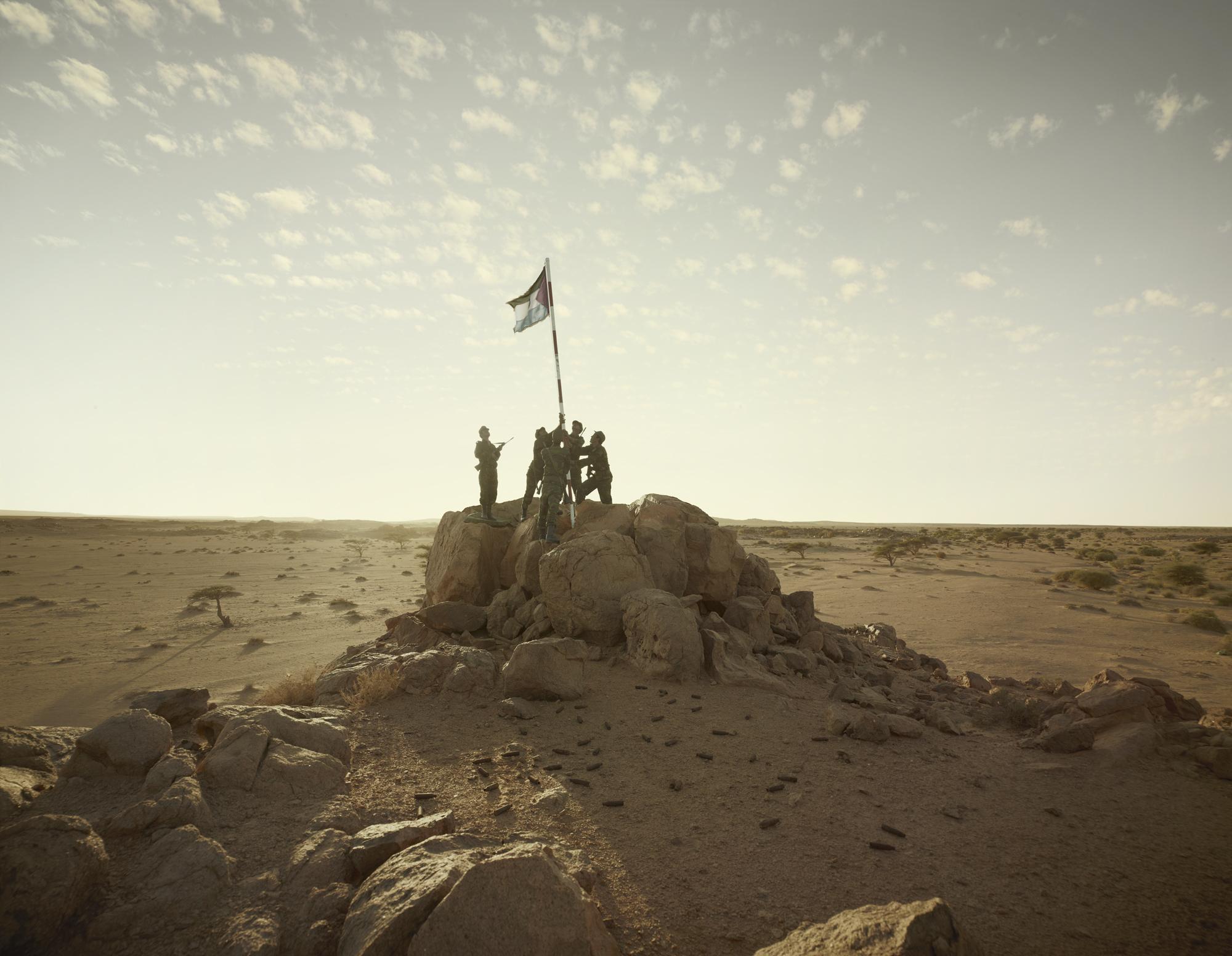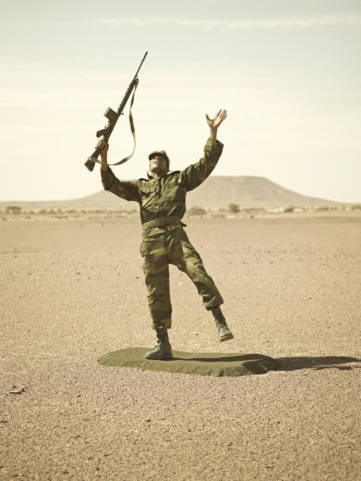 The act of posing real soldiers as toy soldiers draws on a reality re-constructed and plays on the notions of powerlessness and invisibility not just of the soldier within the machine of war but also the individual as a refugee (all the soldiers are refugees in the struggle for self determination in Western Sahara).