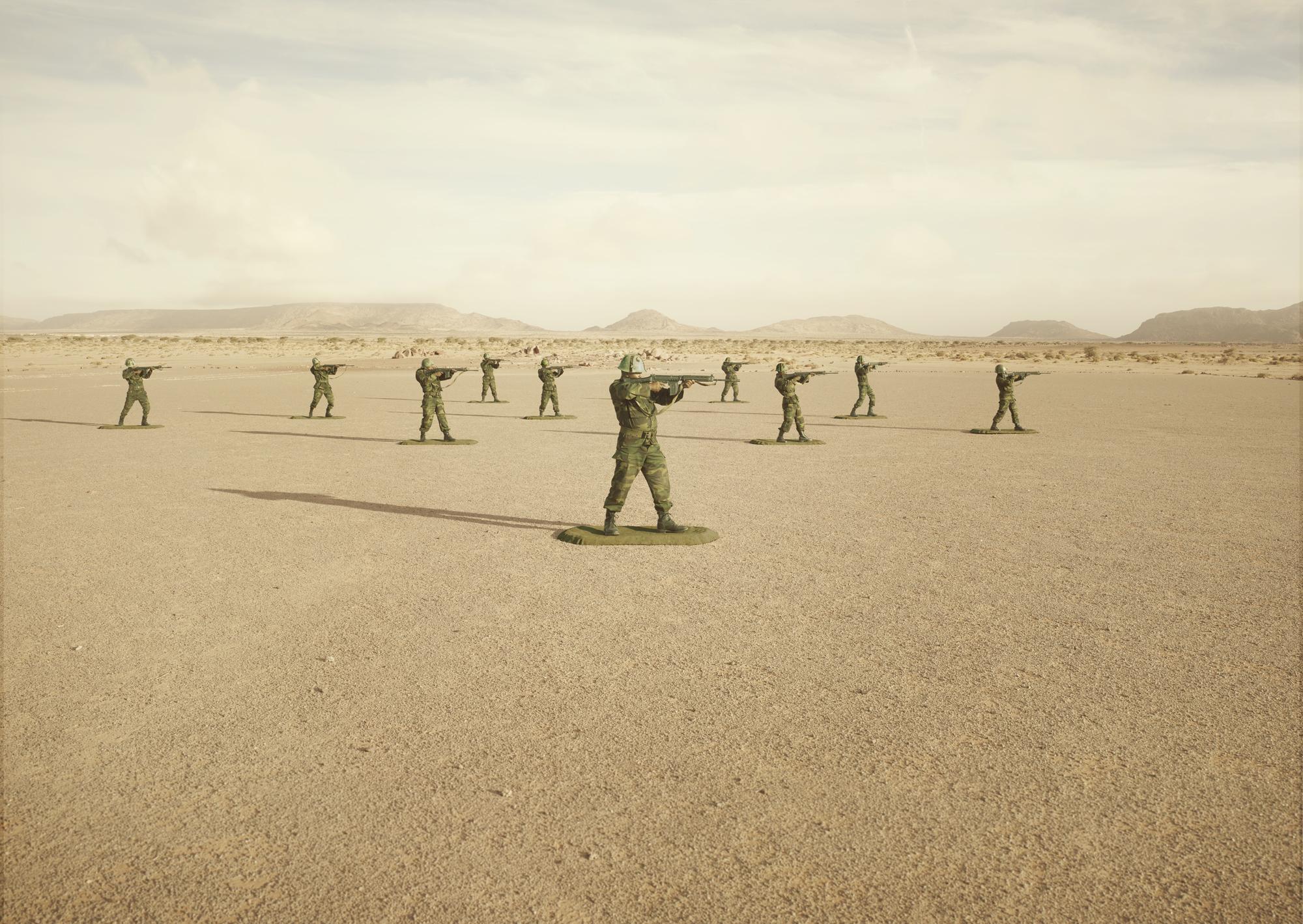 I think the resonance is two fold, firstly there is a romance to memory almost all western adults will hold, that of a childhood enactment of, or playing at war games with or without actual plastic toy soldiers. Then secondly there is the more subconscious fallout from this memory once there is realisation of seeing that what is being depicted in this project are not toys but real soldiers posed as toy soldiers. There are ramifications of this that impact on our personal childhood memories of innocent play, when coupled with the truth of war and our cultures modern desensitisation to graphic violence through it's relentless streaming and depiction as entertainment.