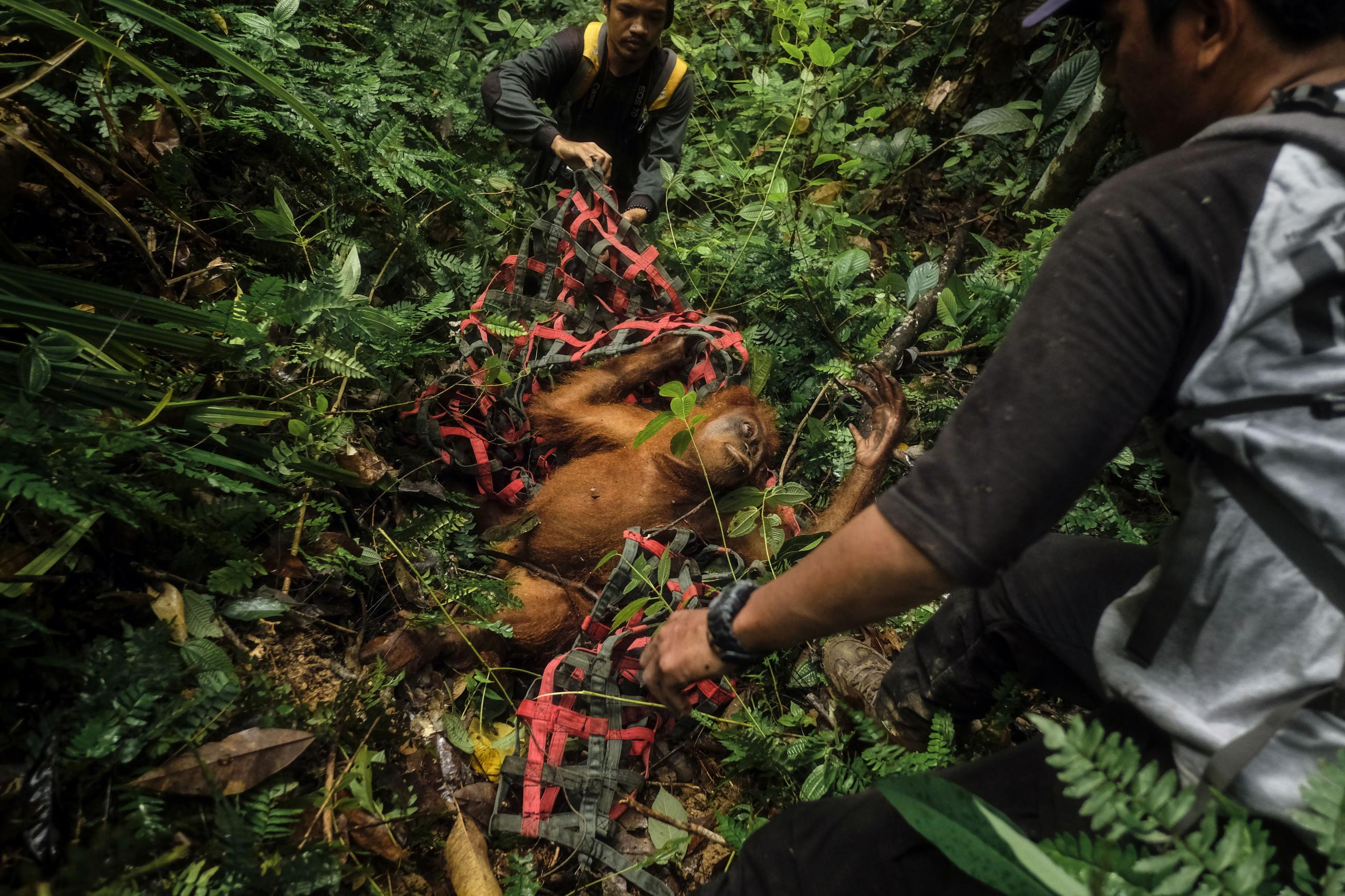 My initial experience prompted me to research the species and I decided to focus on several NGOs based in Medan, North Sumatra, who are rescuing, rehabilitating and, when possible, releasing orangutans back into the wild. Obtaining permission to accompany the rescue teams took months but once I was vetted I had to act quickly. The team operates in real-time so it was just a matter of being ready. I wanted to tell the story of the people who work tirelessly to save this endangered species.