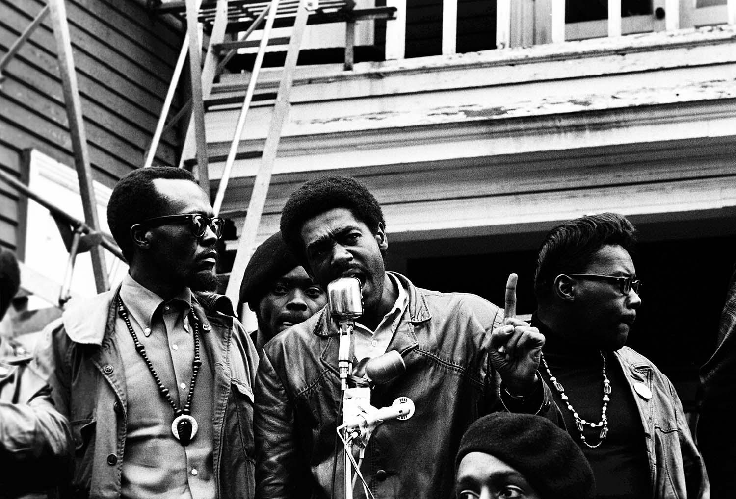 The first time I saw Bobby Seale and Huey Newton was on April 15, 1967, during the Spring Mobilization to End the War in Vietnam. My father had come up from Los Angeles and we were marching together through the streets of San Francisco, when my eye caught Bobby and Huey in their leather jackets selling Mao’s Red Book. Their charisma and confidence captivated me. I took one frame.