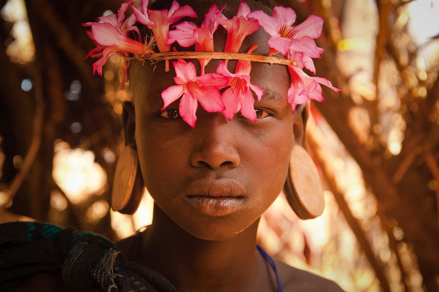 My most memorable shoot was in Ethiopia's Omo Valley for my first book, 'Tribes of the Omo Valley'. For two weeks I traveled along the Omo River with a chief from the Kara tribe documenting the many people who would soon be affected by the building of a massive dam. Several days down the Omo we reached a Mursi tribe from Sudan who had received few if any visitors from the outside world. Their enthusiasm at seeing me, tearing my clothes and pinching my white skin became abit overwhelming in the hot African sun so I ducked into a nearby hut to catch my breath. As I looked up across from me a young Mursi girl stared back a lit by the sun coming through the hut. The lighting was perfect and it ended up being the cover shot for the book.