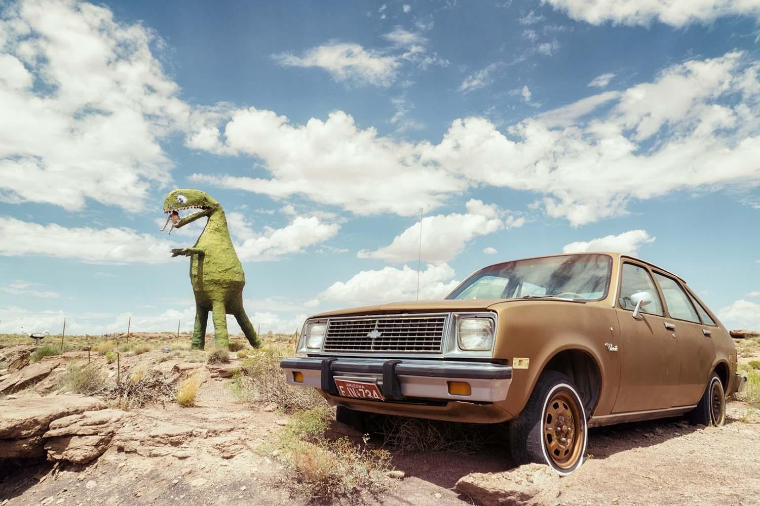 In August 2016 I was on a scientific meeting in Tucson Arizona. Since I love the southwest of the USA with its extreme landscapes and its sometimes quirky roadside attractions I decided to continue my stay for nine further days to take photos for my "Roadside America" series. I travelled through Arizona, New Mexico and California. I encountered the old service area in Amboy, California, located at the historic Route 66. I was there twice to capture the optimal light situation and I had to wait for a while to encounter a situation with a suitable car at the right position for the image I had in mind.