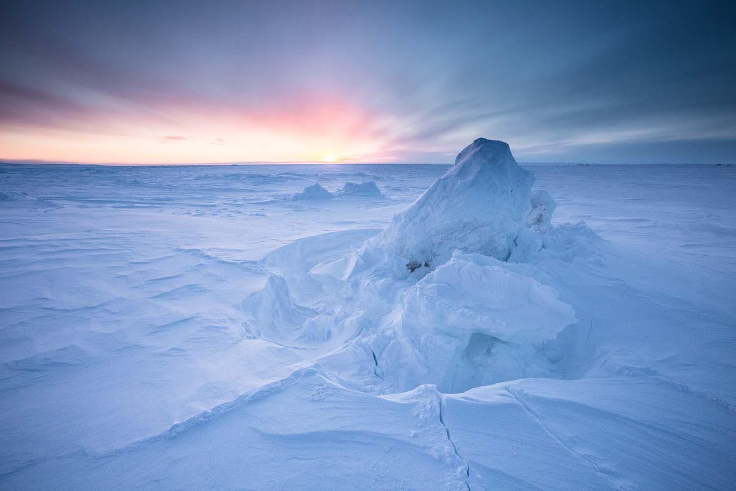 My best advice for shooting in arctic conditions is going to seem pretty obvious: dress warmer than you need to, and be prepared to stay out longer than expected. Where I am, the average winter temperature, including wind chill, is around -45°C, and the average summer temperature is around 5°C. The landscape is also fairly flat, and animals can sense your presence from far away. If you want to get up close and personal without spooking the wildlife, you need to be extremely patient with your approach. This often means being exposed to the elements for hours.