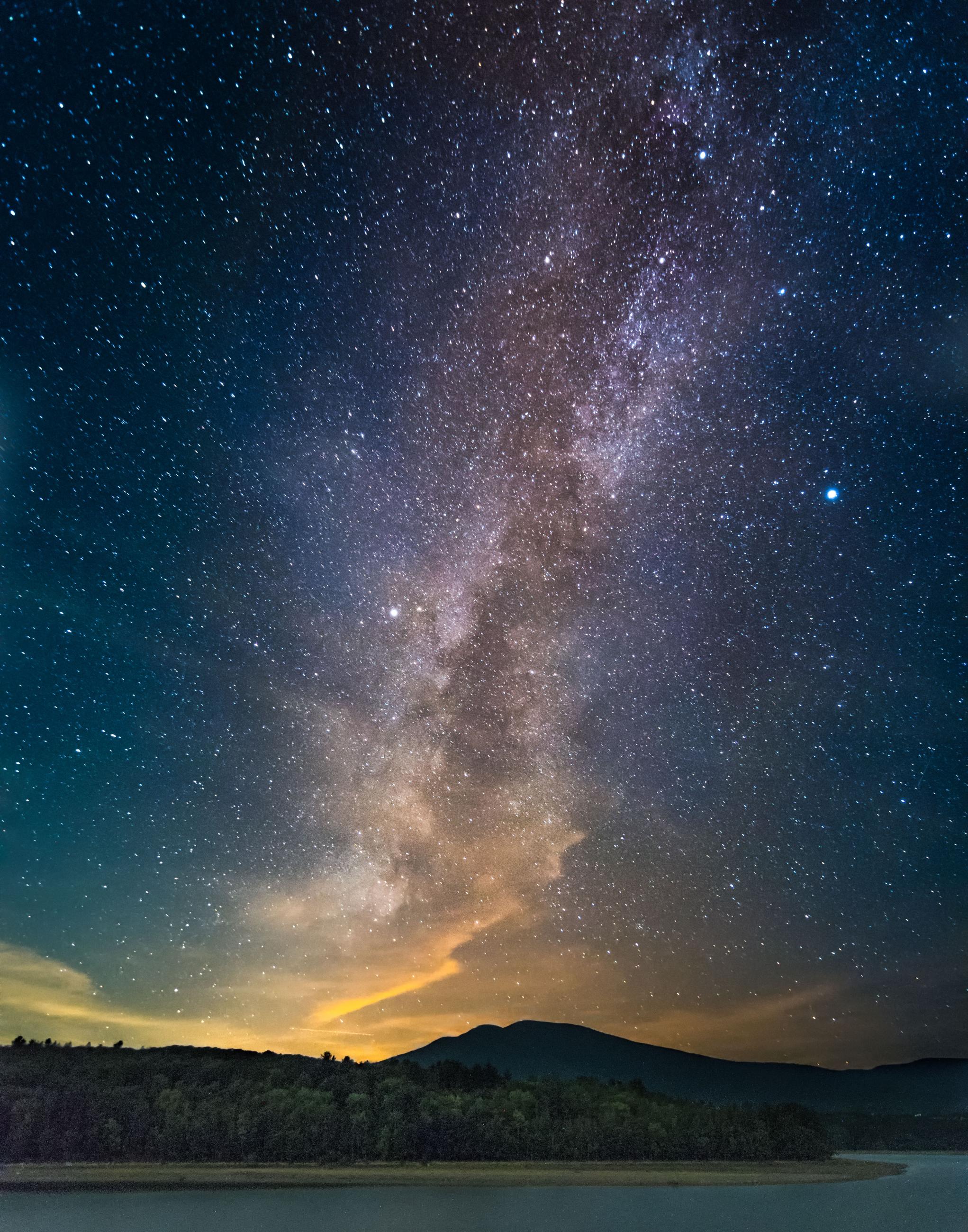 Any DSLR or mirrorless camera is suitable, as long as it can be set on manual mode. You’ll need a lens with an aperture of at least f/3.5 – preferably f/2.8 or wider. The focal length will depend on the need to capture a foreground: wider angle lenses are better but even a 35mm prime lens can give good results. Make sure you have a sturdy tripod.