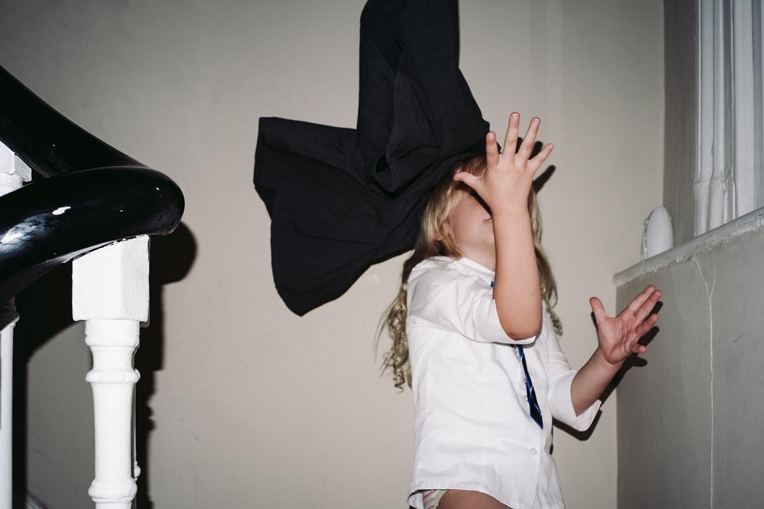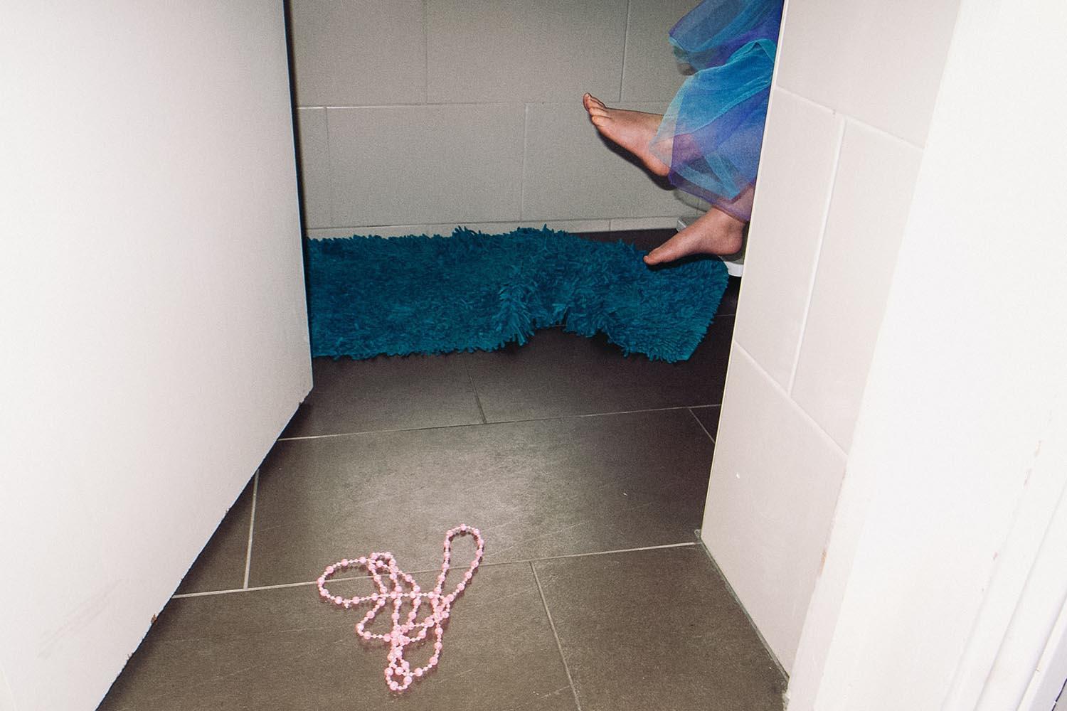 So much family photography deals with the 'perfect' moment, either posed, or those kind of romantic, idyllic candid moments. While I love the work of Sally Mann, amongst others, the children are always very much front and centre, and I'm more interested in the spaces in between - the glimpse of a hand grabbing a banana from behind my laptop screen, legs dangling off a toilet, the frills of a tutu and discarded necklace viewed through a gap in the bathroom door - moments that tell stories via the things that are just in our peripheral vision, or out of sight. If the portrait photographer tries to get to the core of someone by looking into the eyes, I do the opposite - showing the person through the space and objects around them and the impressions they leave, or when they are not aware of my camera.