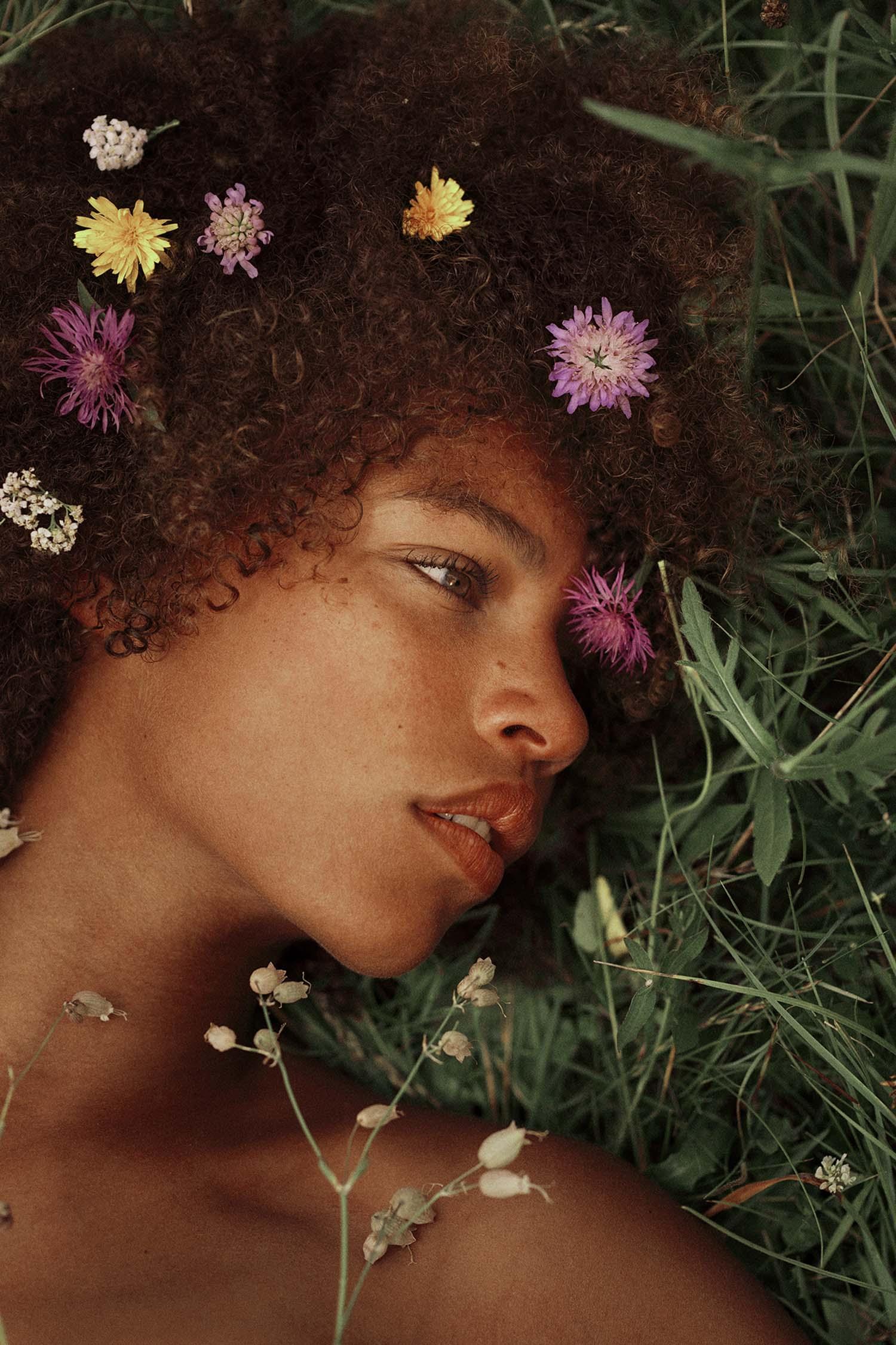 'Portrait of Adima' - I met Adima that day at the English garden in Munich, we went for a walk until we found a location next to the river which inspired me. It was around midday so the sun was very harsh, not an ideal time to shoot but for me, it was a chance to experiment with light settings. My goal was to create a warm feeling that resonates with the forest like atmosphere at that spot. After trying out many reflections this portrait was produced using natural daylight.