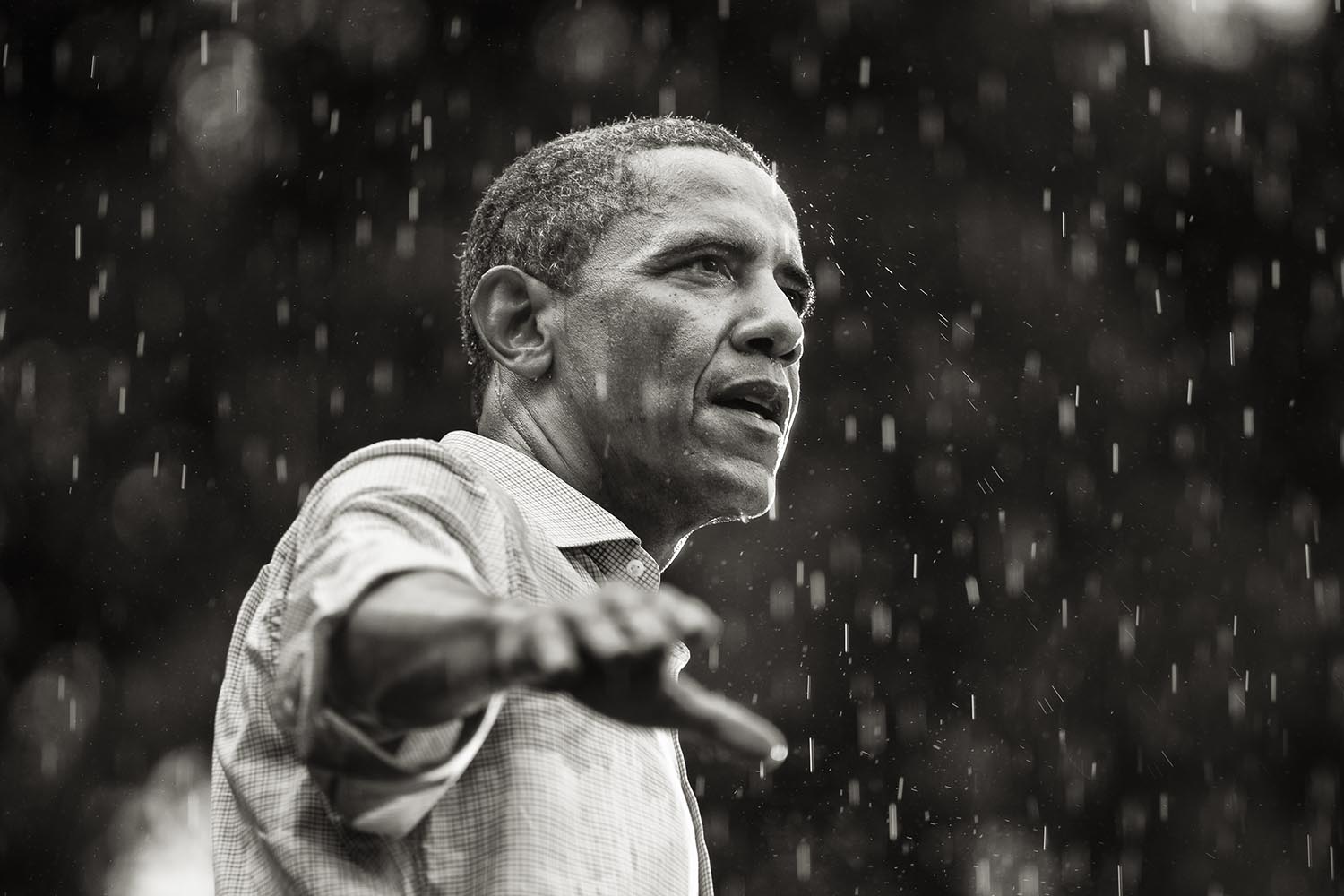 Following my photographic philosophy, from the 2012 campaign, my favorite image was of Obama campaigning in the rain because for me it captures his determination and focus in the intensity of a presidential election.