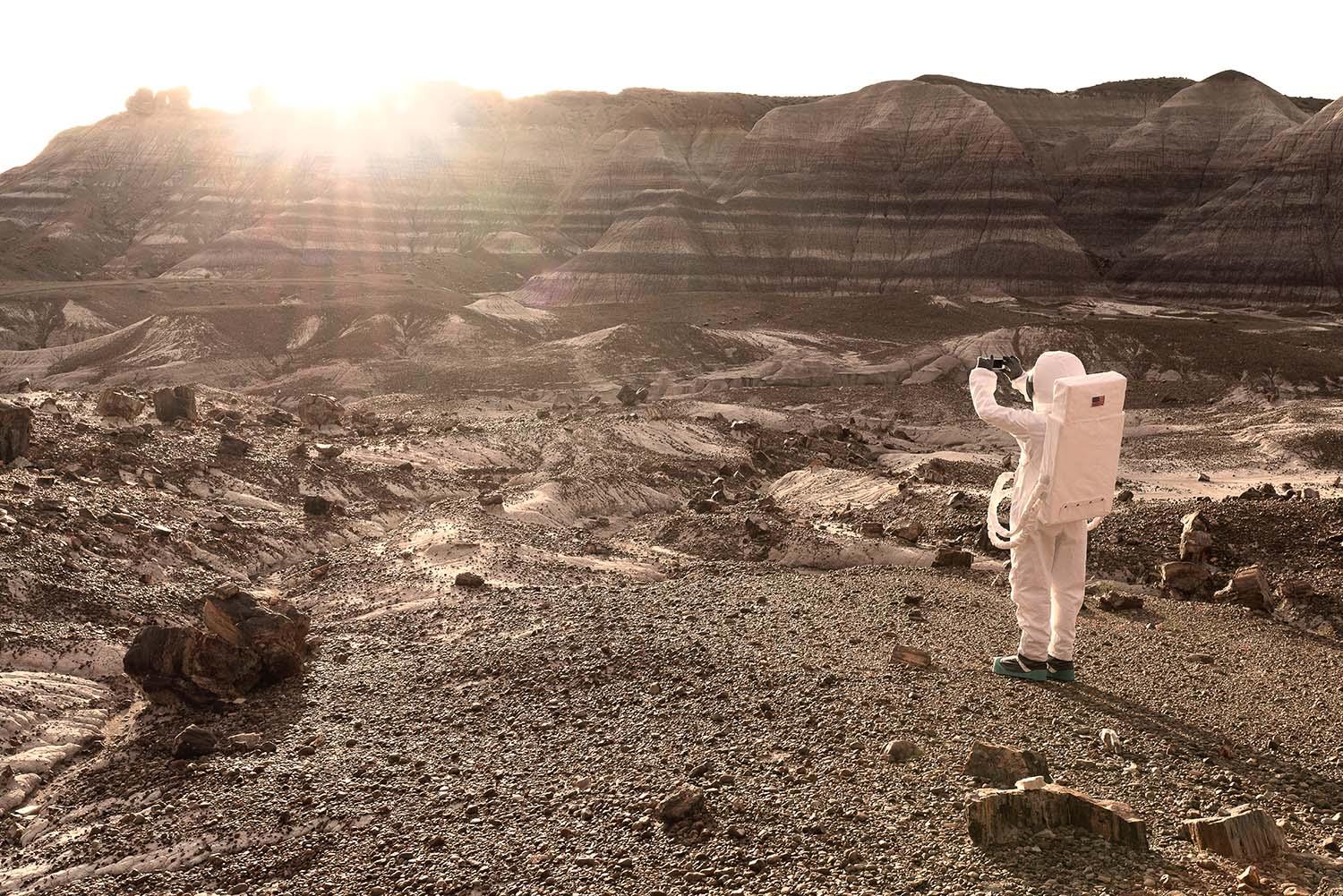 I've been fascinated by Mars since childhood. We hear a lot about NASA, Elon Musk and SpaceX these days. Space exploration is slowly becoming what could be the greatest adventure of the century and the fact that we may witness it in our life-time (just as our parents and grand-parents did in the 60's) makes it even more exciting. In the mean time, with easy travelling conditions, Earth has become really small and tourism has become a lucrative activity. Wild West has been discovered less than 500 years ago and is now an epic touristic destination. Once transportation issues will be solved and if we don't encounter any massive disasters, space-tourism for mid class people is something science enthusiasts can see happening in less than 100 years. On top of that, smartphones and social networks have recently emerged, allowing us to share our lives in real time, to write our own story. We've literally developed a new language to communicate emotions through pictures and that really fascinates me. These are all the ideas I've tried to mix into this project.