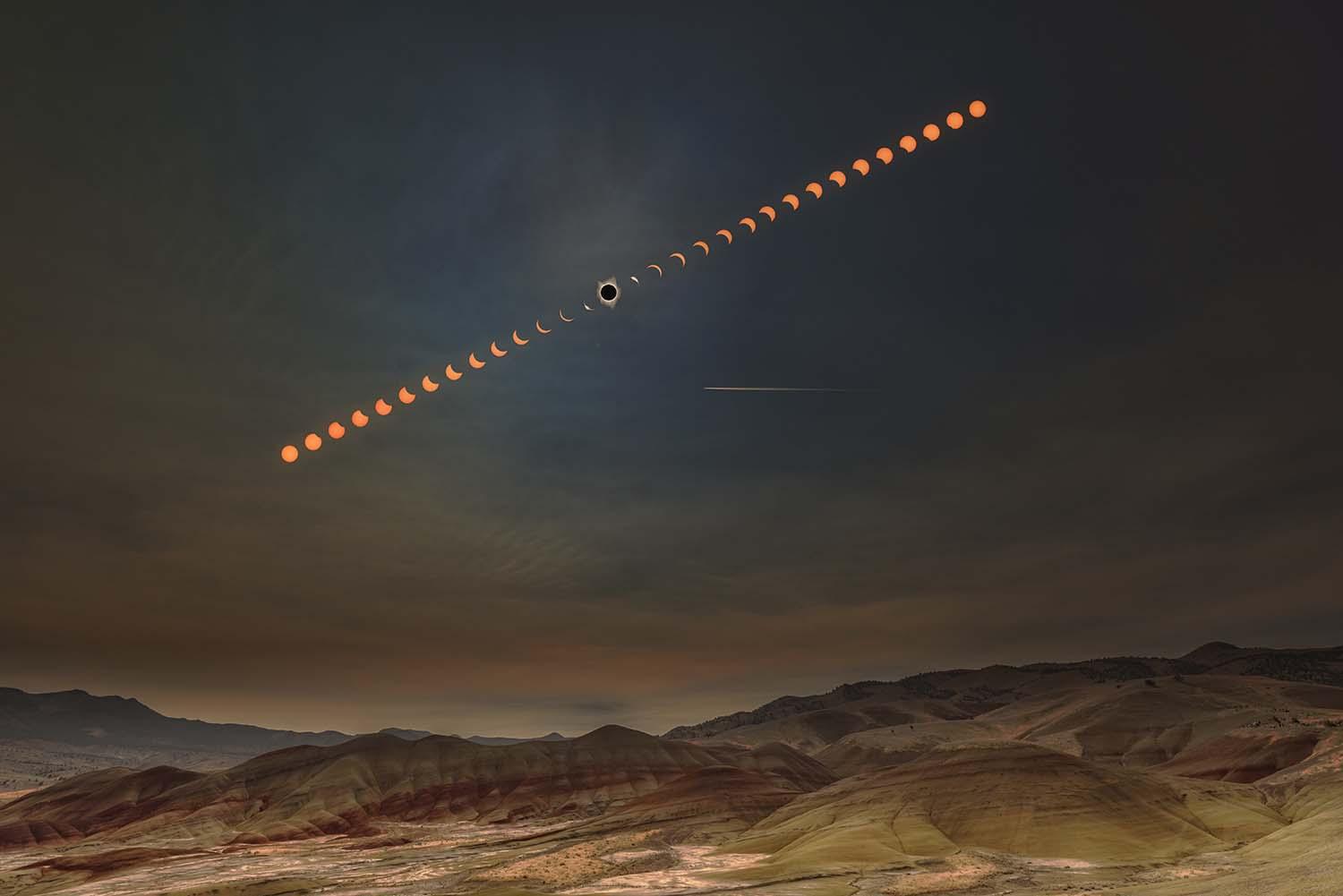 "I went to Painted Hills in Oregon in order to capture the Solar Eclipse. The whole sequence lasted for several hours but the full eclipse only lasted for two minutes. Everyone around me was shouting and jumping. It was like a whole different world, unforgettable. This picture was processed to reproduce what I saw on that day at that moment." - Wenjie Qiao