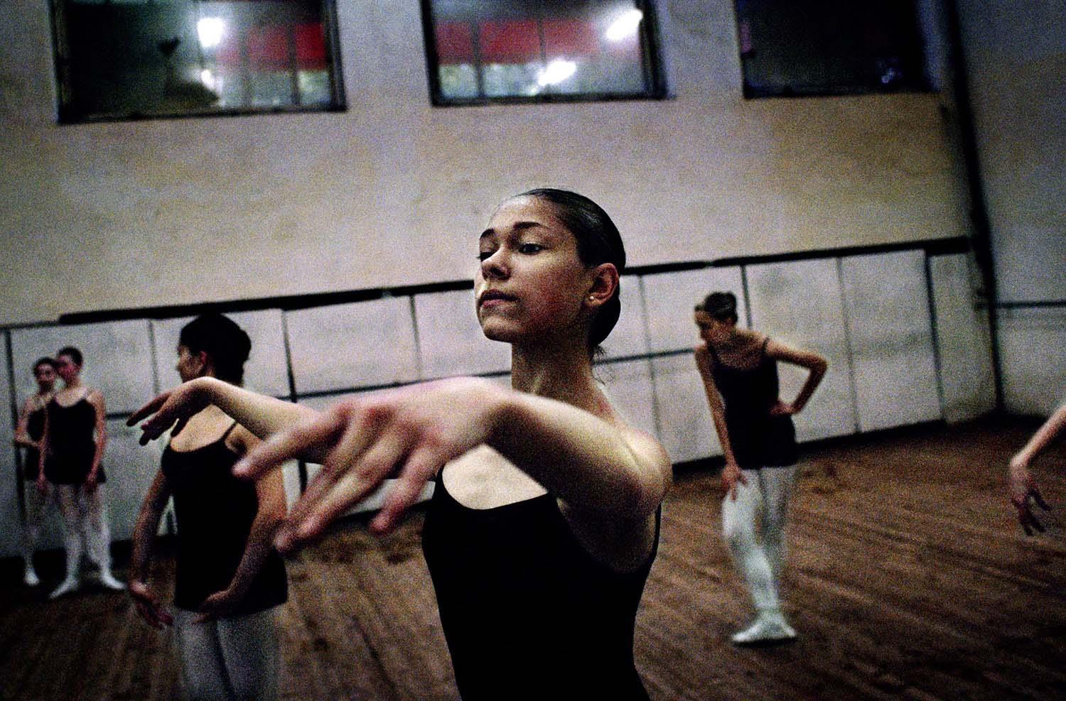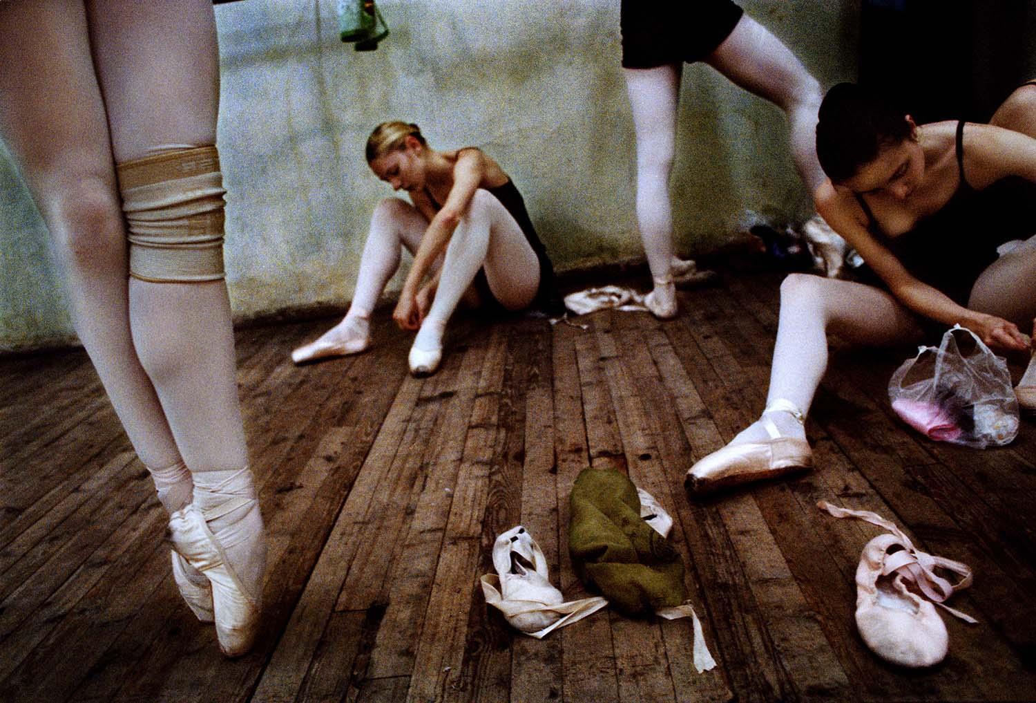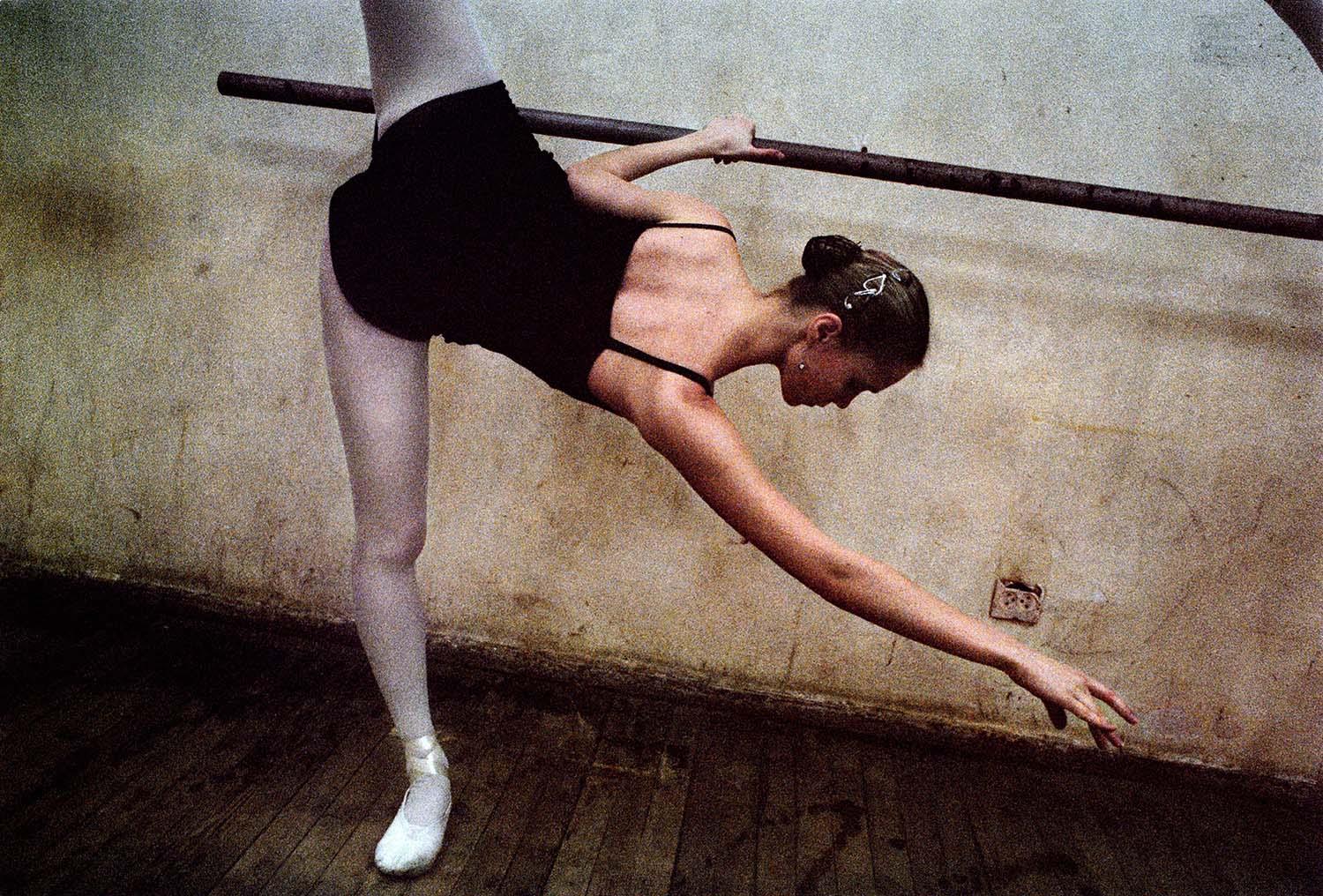 "Sixteen-year-old dance students go through their exercises at the Theatre of Opera and Ballet School. The school is a scene of fierce competition. Moldova is one of the poorest countries in Europe, and many young people see ballet as a means to wealth and foreign travel. Twelve boys and twelve girls aged around eight are accepted into a ballet class every year. They stay for nine years, training a minimum of five hours a day in addition to normal lessons. Each year numbers in the class diminish, as those not considered talented enough are no longer allowed to continue."