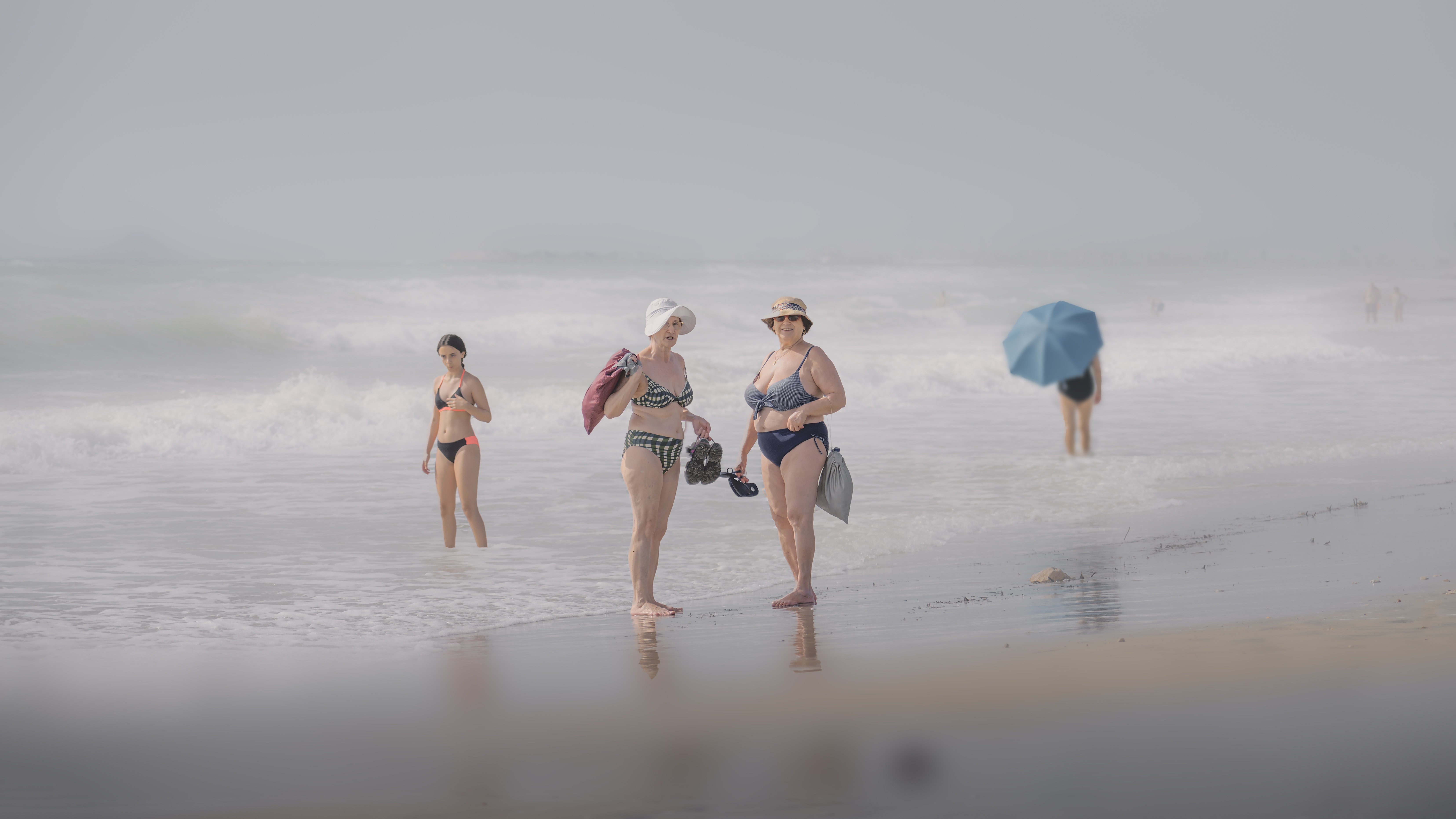 This picture was taken in 2021, during the summer, in La Torre de la Horadada, Alicante, Spain. I took the shot during our morning walk along the shore, a walk that had become a tradition before going for a swim. During these early hours, the beach turned into a meeting point for bathers.