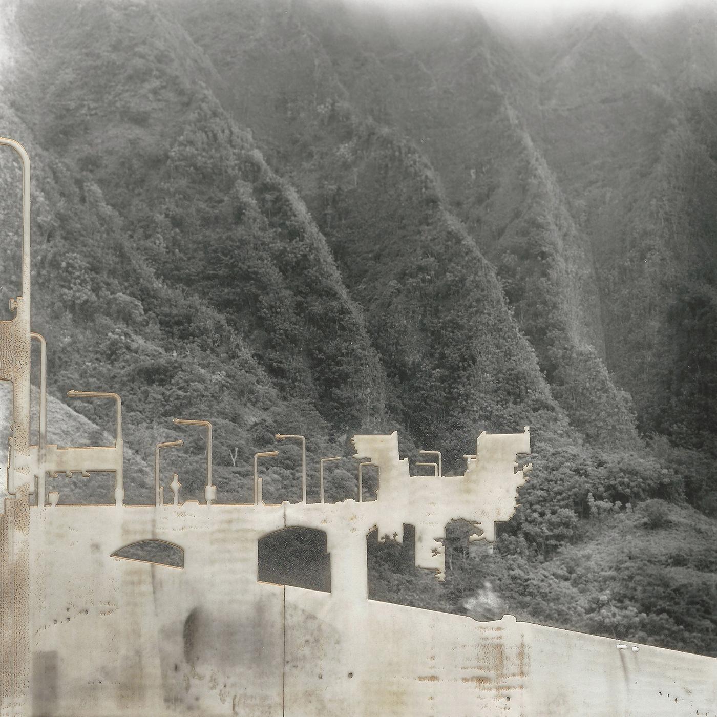 I wanted to take this shot as I see history repeating itself on the island with the development of the Honolulu Rail Transit. I wanted to respond to the ever-present threat of the concreting blanketing of the natural world. I decided to etch the surface of the print with a laser and cut out the manmade structure in the composition. It’s interesting to see how the structure becomes more prominent when it is removed. I embrace old and new technologies, as seen here with analog photography and a laser cutter.