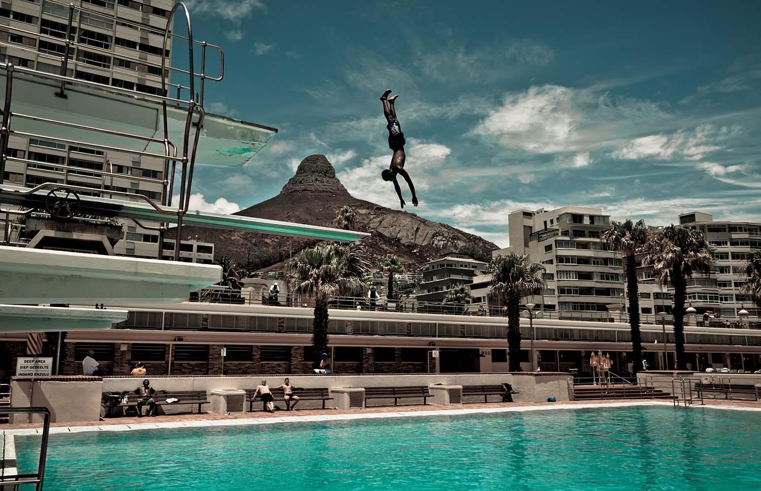 I’m lucky enough to to swim in one of the world’s most beautiful public pools in Cape Town, The Pavilion. It’s separated from the sea by a single wall, with breathtaking views of the mountain and gulls swooping overhead.