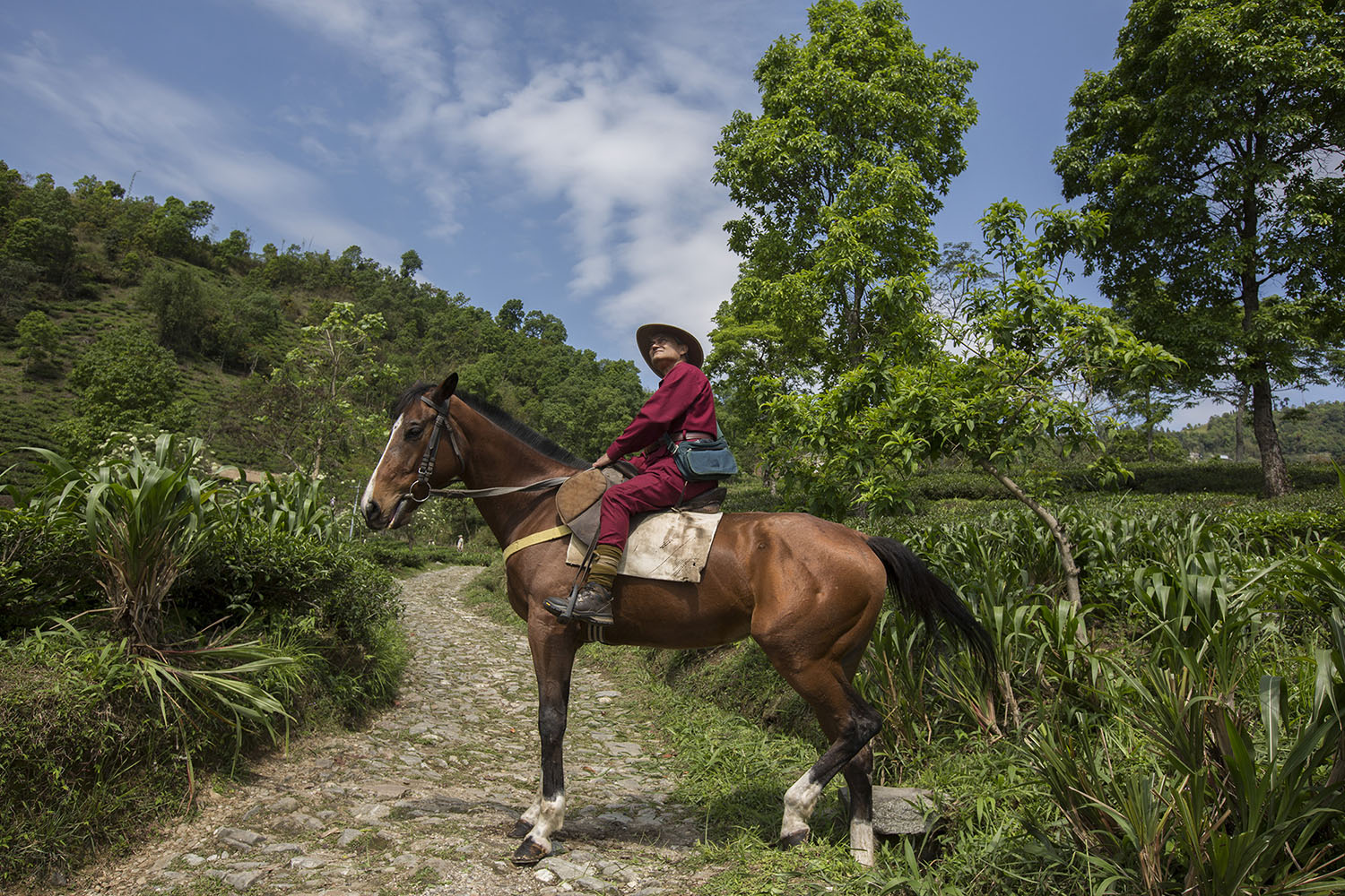 © Matilde Gattoni - India, West Bengal: Rajah Banerjee, the chairman of Makaibari Tea Estates, riding one of his horses within the tea garden. Makaibari is one of the most famous Darjeeling tea brands and was an official partner of the 2008 Beijing Olympic games.