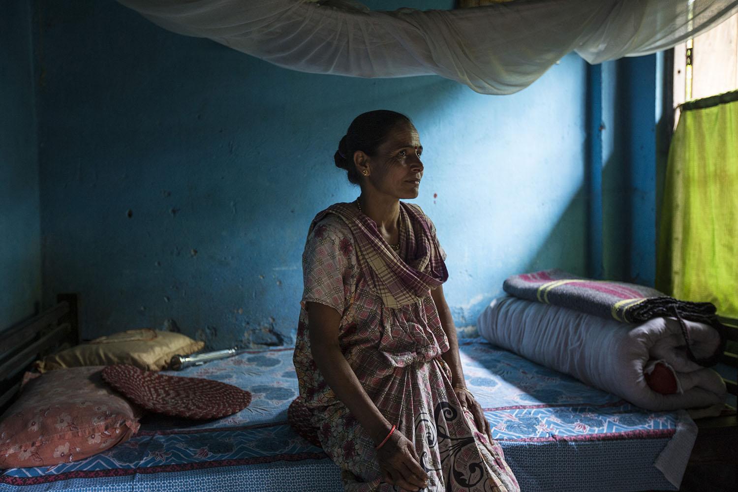 © Matilde Gattoni - India, West Bengal: Mina Sharma, 45, posing inside her house at Mogulkata Tea Estate, in the Dooars region. The woman started working as a plucker when she was 30, after taking over her mother's job. Once she will retire, she hopes her 25-year-old married daughter will take her position, otherwise Sharma would lose her house and plot of land which, like all the other properties within the tea estate, belong to the company. With no money to buy another dwelling, the woman has no other option but to keep on living here.