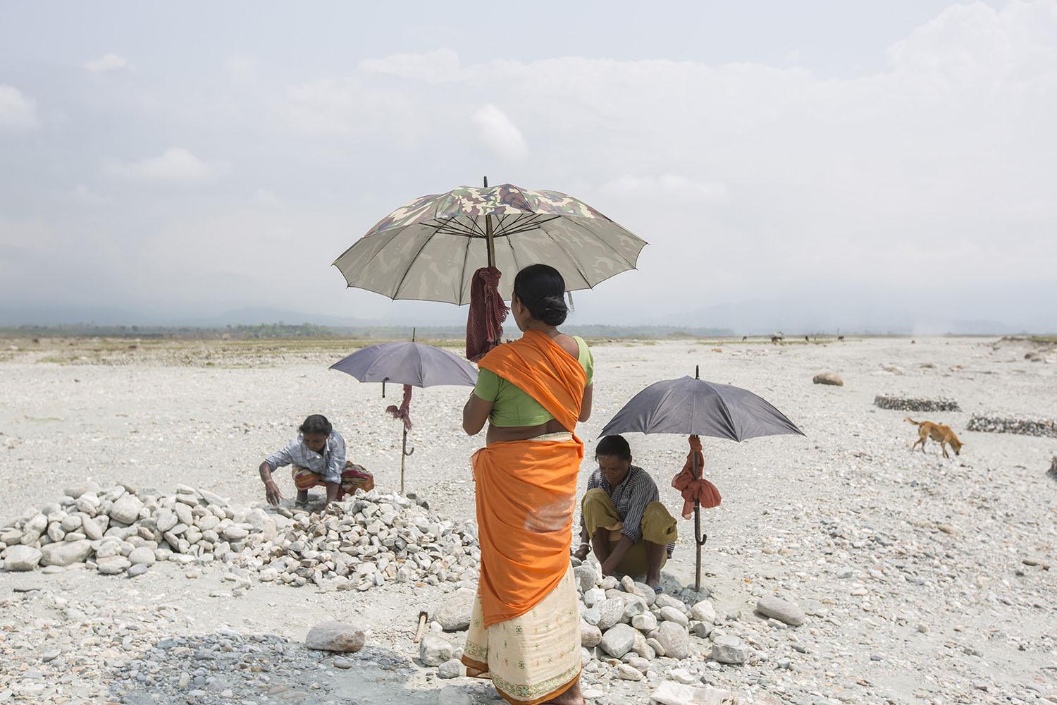 © Matilde Gattoni - India, West Bengal: Former tea workers collecting pebbles and stones along the Diana riverbed at Red Bank Tea Estate, in the Dooars region. The garden, which houses 888 workers out of a population of 5,000 people, has been closed since 2013. With no more income, food rations and health services, its workers resorted to stonecrushing in order to survive.