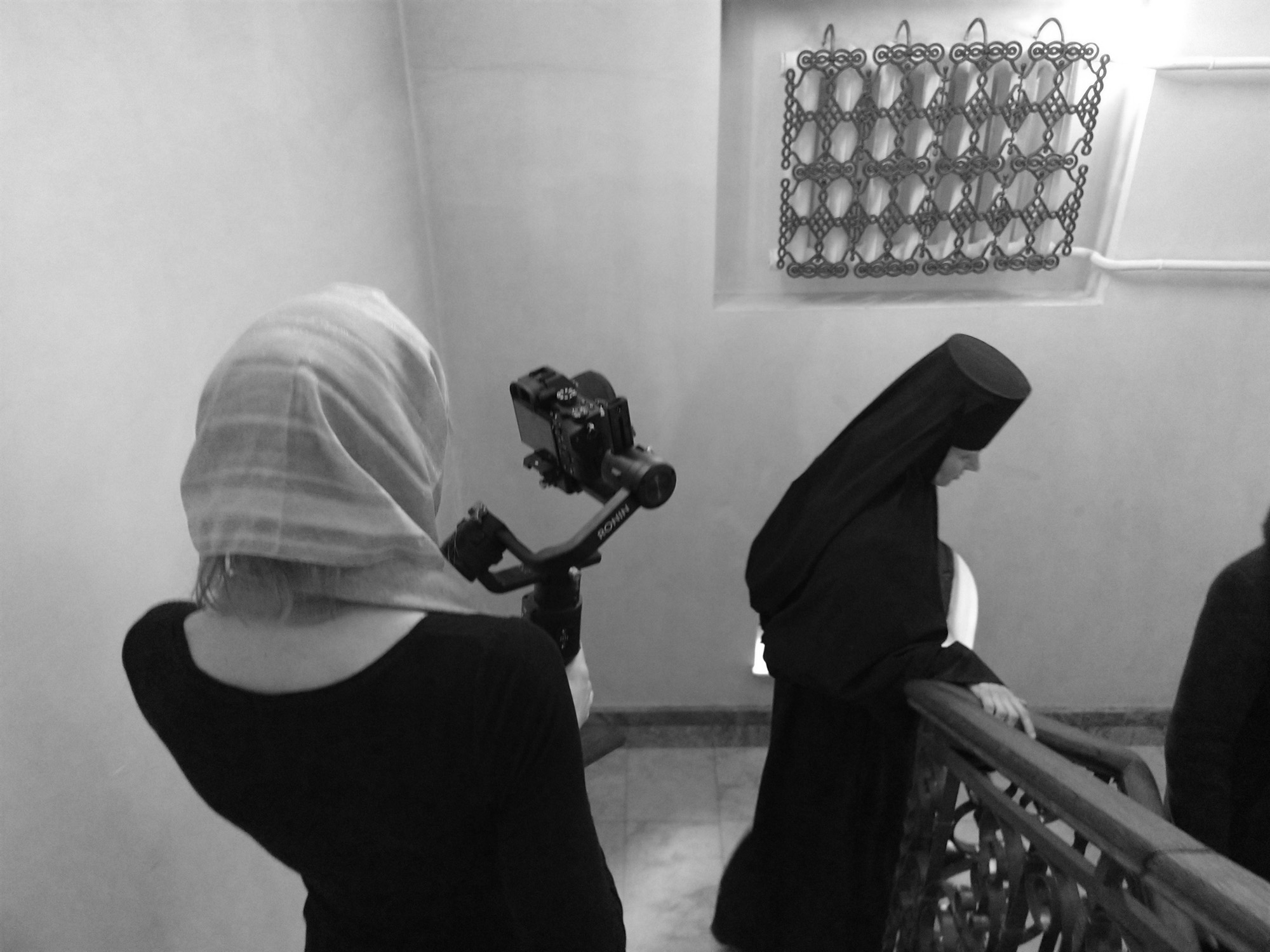 It was a very clear decision for me, as the film is an extension of the Ex-Voto project, which was shot entirely in black and white. There is an abstractedness to monochrome, it can feel like you are stepping into another world or a different era. I ‘saw’ it in black and white while I was filming, I never really experienced my time in the convent in colour. The black-and-white also emphasizes the strict discipline and ascetic lifestyle but also the possibility of transcendence and spiritual freedom. I find a purity to black and white, there are less distractions, and I feel it allows you to be more present in the moment.