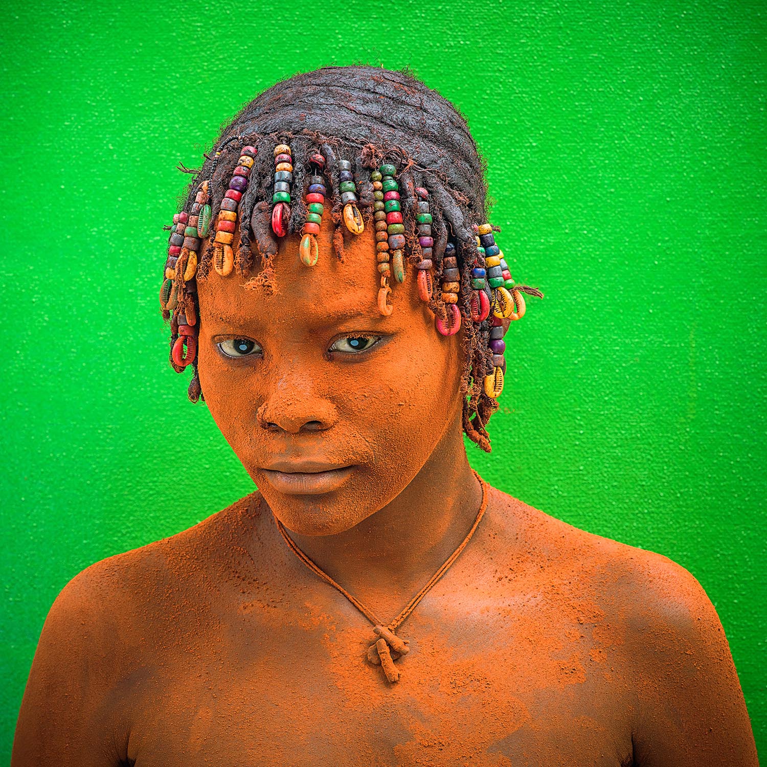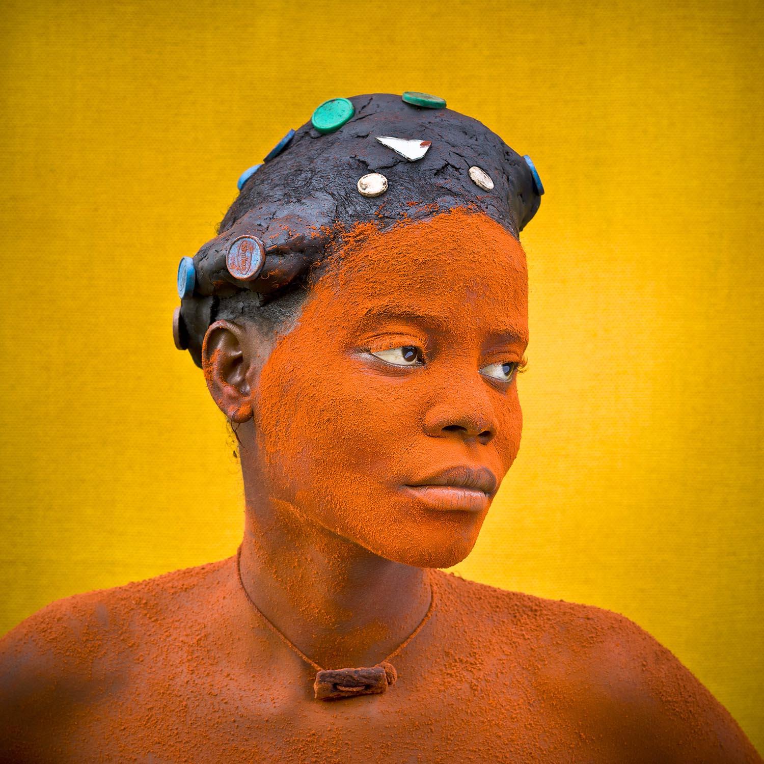 Every day the young woman engages in an elaborate beautification ritual to draw attention to herself. She spreads a red preparation, a mixture of powder of ngola wood with palm oil, over her own body. The sophisticated hairstyles, made of a mud like paste, a mixture of ashes from bopokoloko leaves and palm oil, are yet another way for walés to flaunt their uniqueness.