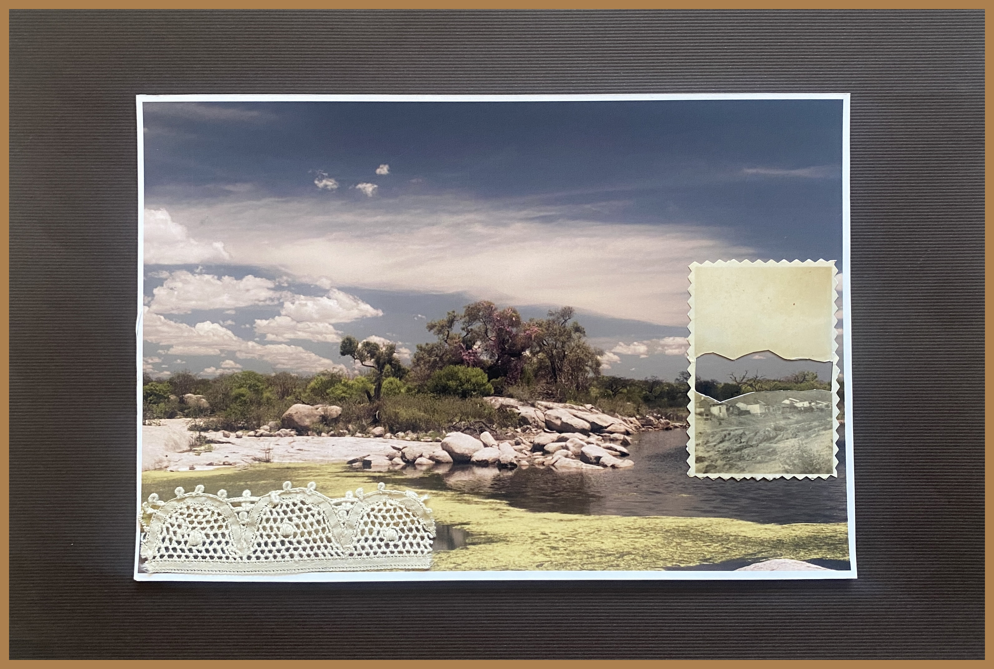 Dobra do Tempo #3 is part of a series entitled Chão de Histórias (Ground of Stories), in which the photographer explores the relationship between territory and family history. The series combines landscape photographs from the Floresta and Vale do Catimbau regions of north eastern Brazil with landscapes from the family archive, as well as Renaissance lace – a local tradition introduced to Brazil in the 19th century by French nuns and later passed on to indigenous women. The collages establish a continuity of forms between these three ‘materials’, weaving together the past and present.