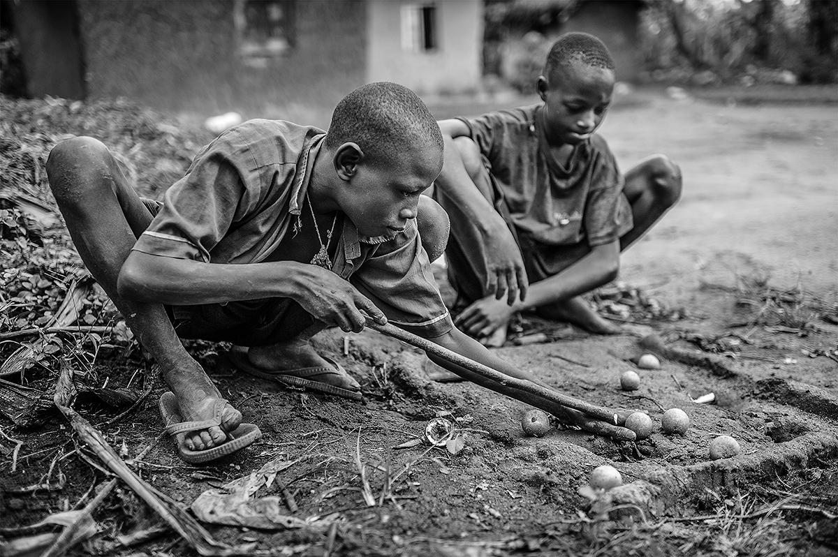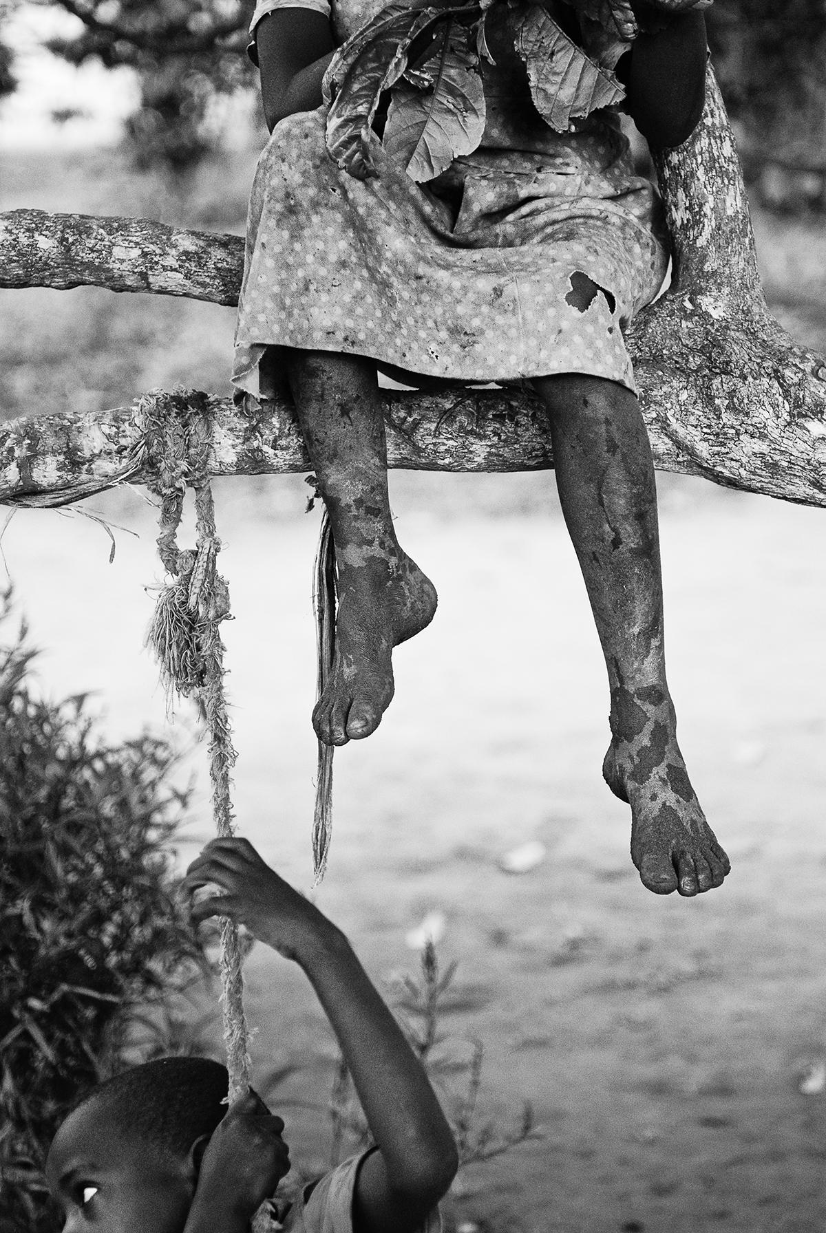 In 2006, I read that sub-Saharan Africa would soon be home to more than twenty million AIDS orphans, then met a family of children in a remote paradisiacal village in the Rakai district of Uganda. I’ve returned to this village for five periods of two months, and have allowed these children to guide me through their world. Documenting what it feels like to be a kid in the epicenter of the AIDS pandemic, I’ve attended school, gardened, “swam,” and foraged with them for both fruit and insects.