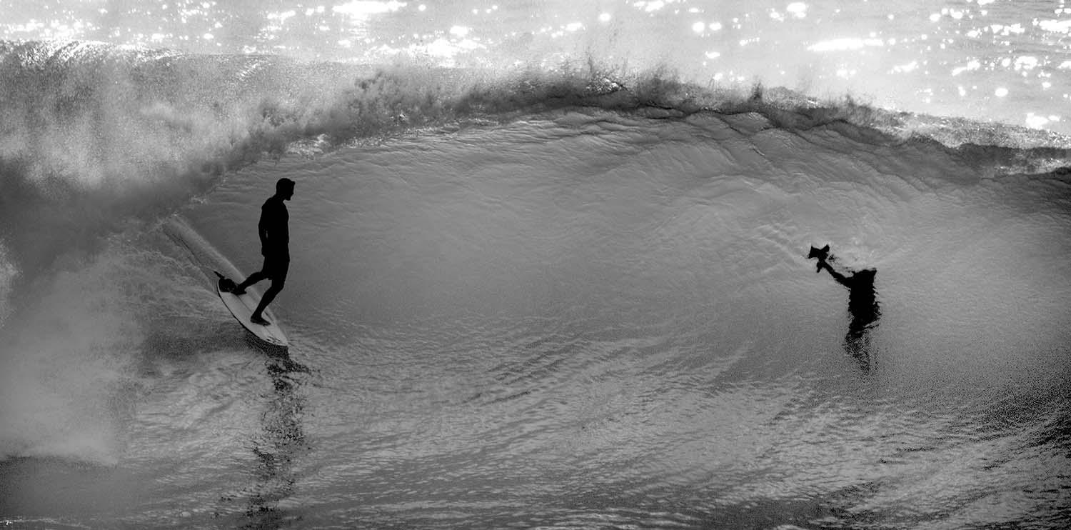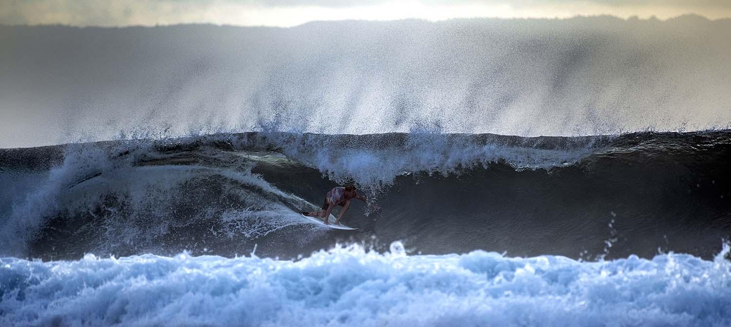 I don’t think I’m facing any hazards because I only shoot from a boat, the shore or a slick lounge on a cliff. Maybe I get tossed around a little in the boat, maybe I get splashed or maybe a rock stuck in my flip flop. It’s not terrible. Those photographers getting pummelled out there in the barrel are in constant peril and command a huge respect for their level of fitness, skill, and knowledge of both the sport and the water. The currents are berserk and I just don’t have the experience to risk my scalp out there. Knowing that I’m limited to a boat, beach or cliff, my challenge comes in trying to find a different way to shoot the same thing. My own photos become redundant to me quite quickly, so there’s always the challenge of trying to find a different background or different element to incorporate into the composition. It just means I have to do a little research, seek advice from locals and travel to different places to get what I want, but these are all elements I enjoy. I’m constantly trying to figure out when and where I should be, but due to my lack of experience, I’ve failed on more than a few occasions. Just last week, I drove 90 minutes to a beach on a day that was supposed to be a 9-10ft swell and it turned out to be 3ft. Alas, I ordered a coconut and watched the sun go down. Again, not terrible.