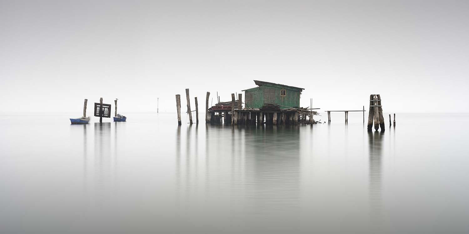 "These fishing huts (Casnoi) are built on stilts in the Venetian lagoon. The local fisherman use them to store their equipment in a safe place. I was completely transfixed by their colours and shapes, but even more so the space around them. I shot this series in November 2017. The weather was perfect with no wind, the fog was thick enough to render a monochromatic feel to the scene whilst reducing the background to a blank canvas. This gave prominence to the subtle colours of the huts. I used exposures of around 30 secs to further smooth the water without losing texture in the shadows." - Rohan Reilly