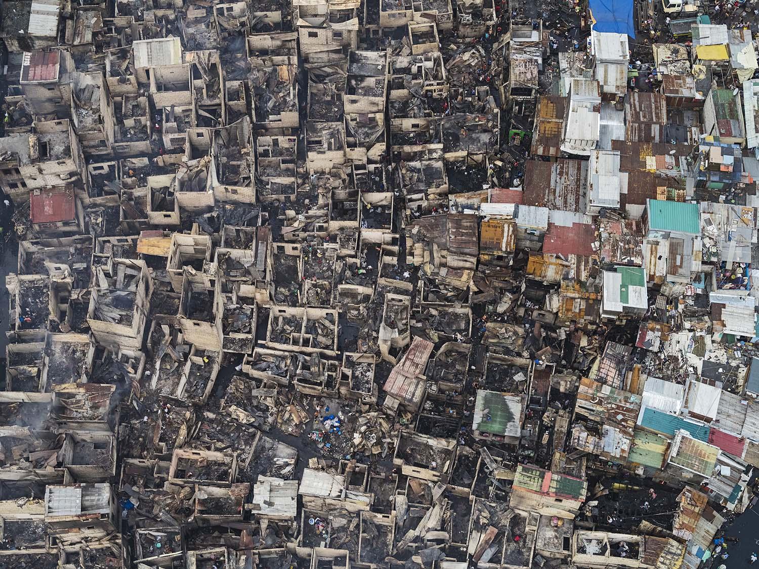 For my last Aerial Views series I had been in Manila, Philippines. The night before the photo flight I saw a huge fire in the city directly at one of the areas where we wanted to fly over to photograph. The next morning when we were flying over this slum area, we saw, that this quarter was completely burnt down. I saw people crawling through their destroyed homes, trying to find their belongings. It was a sobering experience.