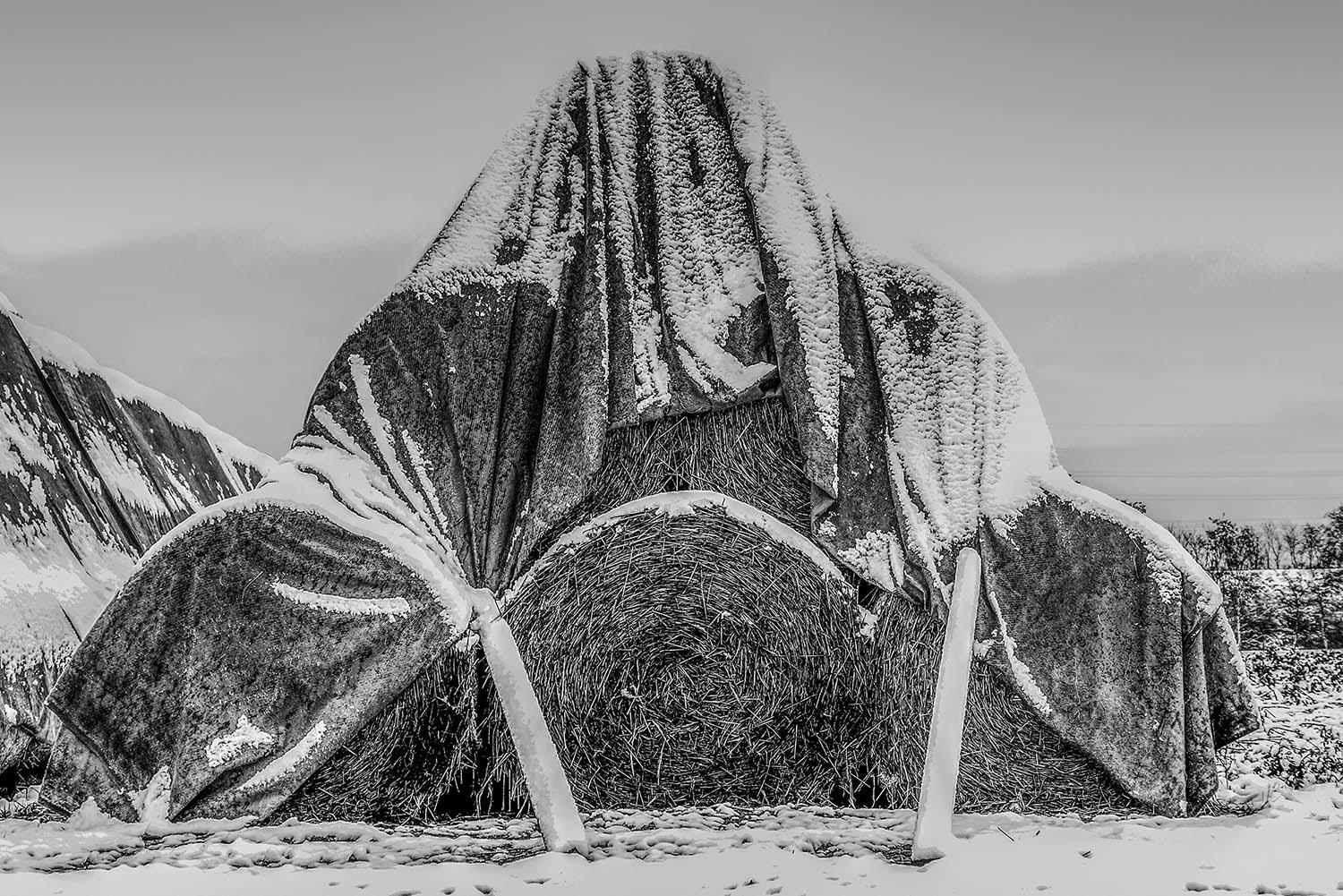 Wrapped was taken on a foggy December morning in Ratingen (Germany). The cover of these straw bales spontaneously reminded me of Christo's veiling artworks.