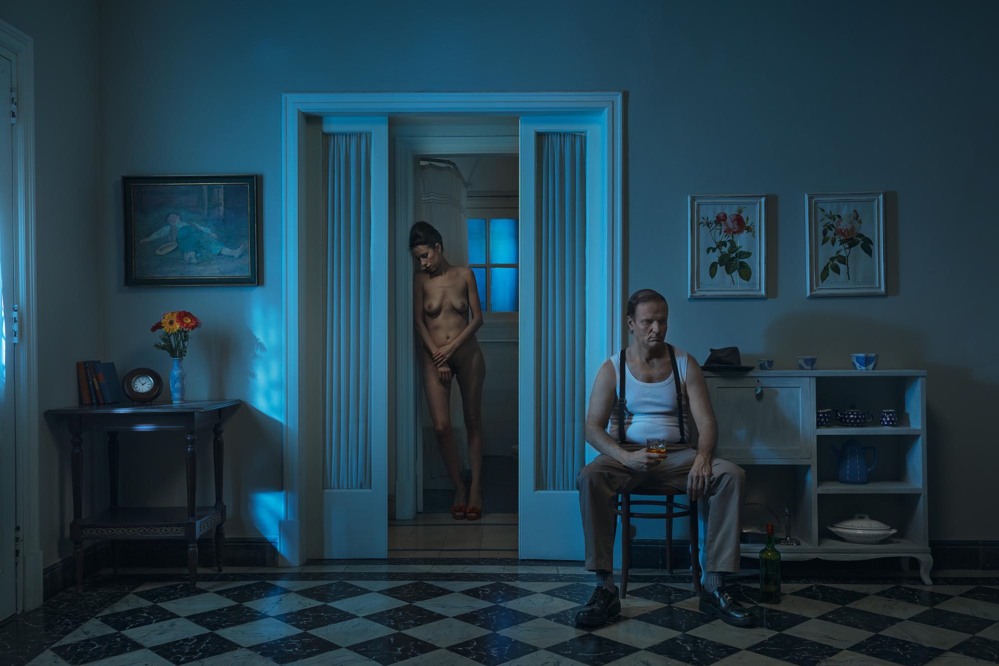 "Agony of Love is a photo series about the last moments two lovers, or a married couple, live in their home. These people still love each other, but they are suffering a crisis caused by years of living together. The series features several cinematic compositions, each one composed to create a narrative experience. The viewer is introduced to a couple on the verge of separation. It’s a close-up, intimate portrait where the characters face a major life obstacle. This series was inspired by the painter Edward Hopper and the photographer Gregory Crewdson."