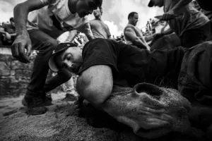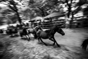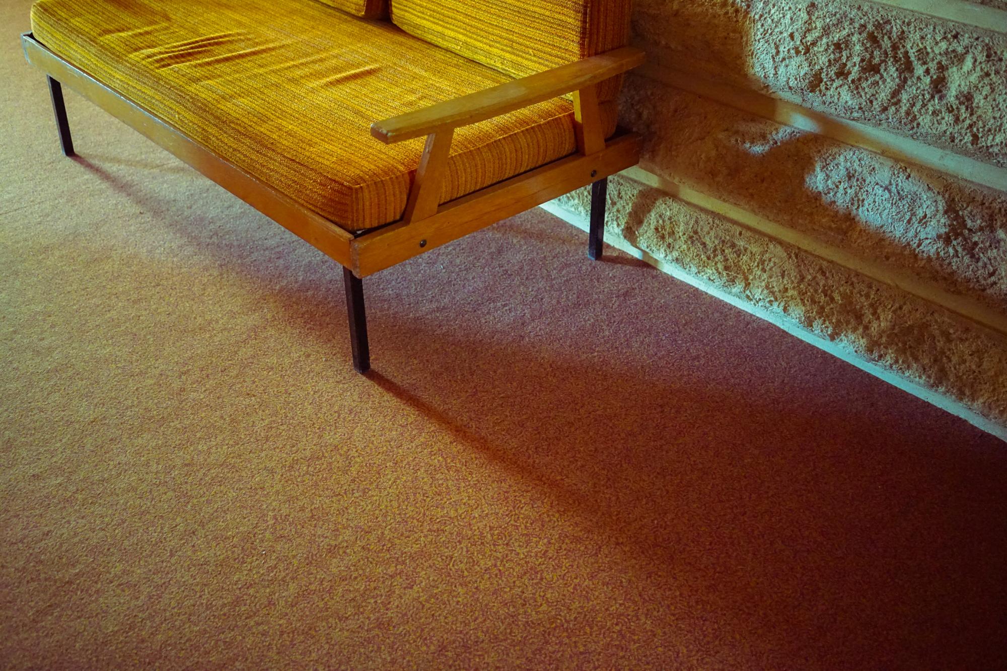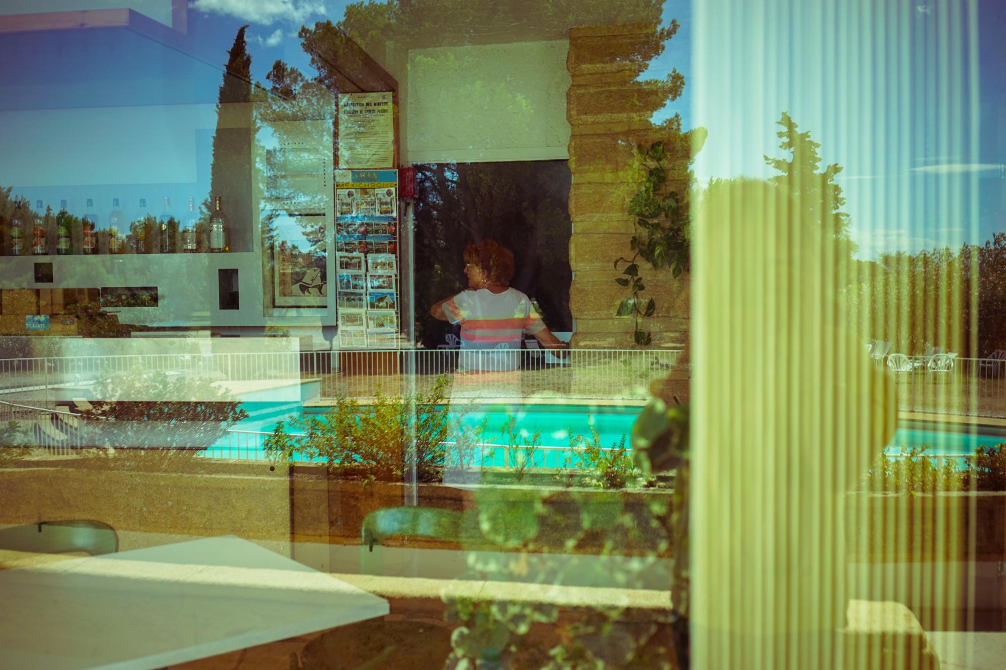"Les Cabanettes is a hotel near Arles, France, that only a few lost tourists seem to know about. Built in 1967, it retains many of its original features, from carpets and furniture to light fittings and an outdoor pool. I came across the building on the internet, before heading to Arles for a workshop in 2019. Something about it proved irresistible to me, so I decided to make it the subject of my studies. Having arrived, I was transported back to the 1960s, and soon became immersed in the story of an old hotel on the outskirts of a road in France."