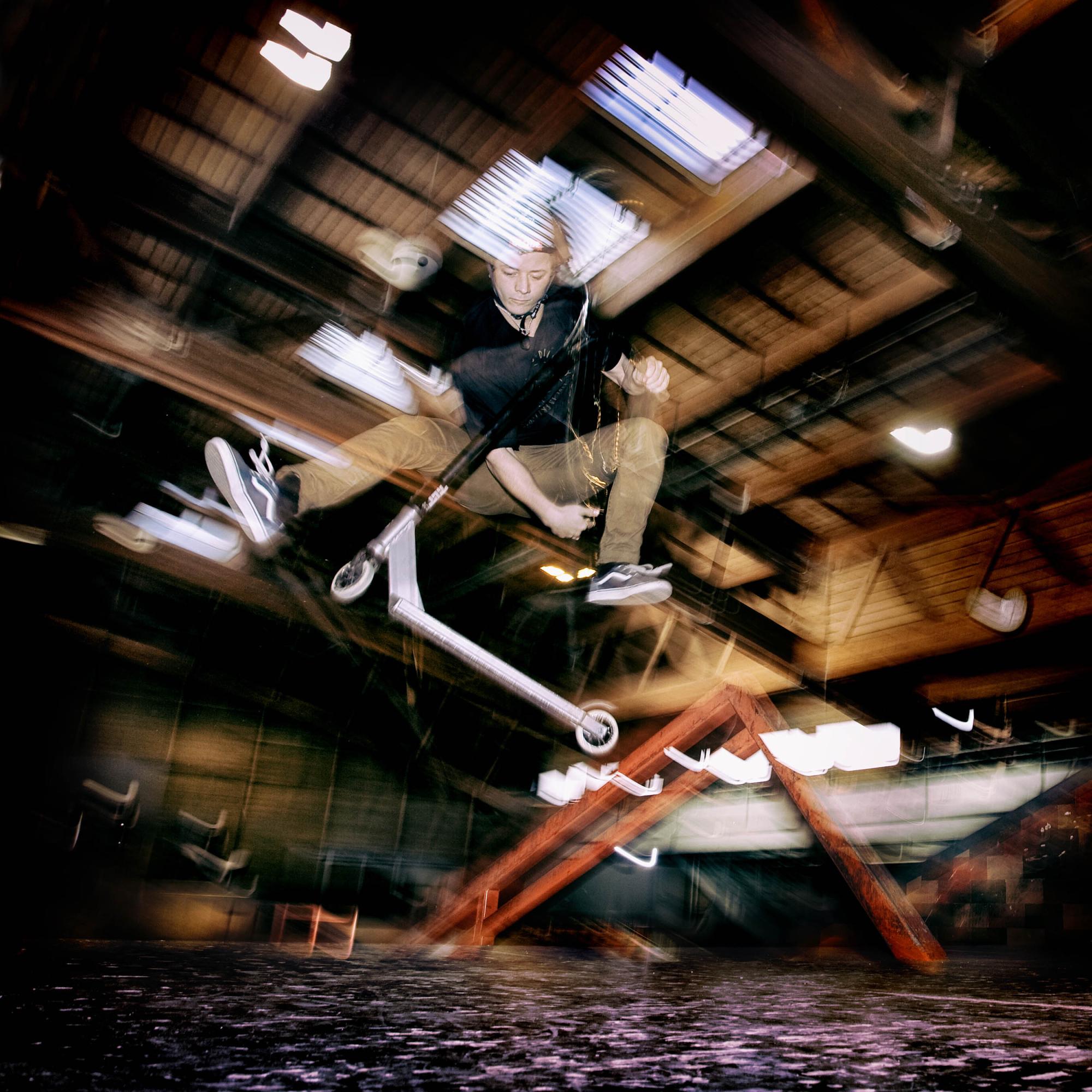 "The idea behind this project was to explore the “underground” side of freestyle sport. The pictures were taken during street sessions of freestyle scootering - where riders carry out stunts and tricks in a similar fashion to skateboarding and BMX riding. This kind of sport is ideal for developing the art of photography - for a split second both the performer and the photographer experience a moment of pure artistic freedom. I loved working on the project because I felt, and still feel, a real artistic symbiosis between the photos and the freestylers. "