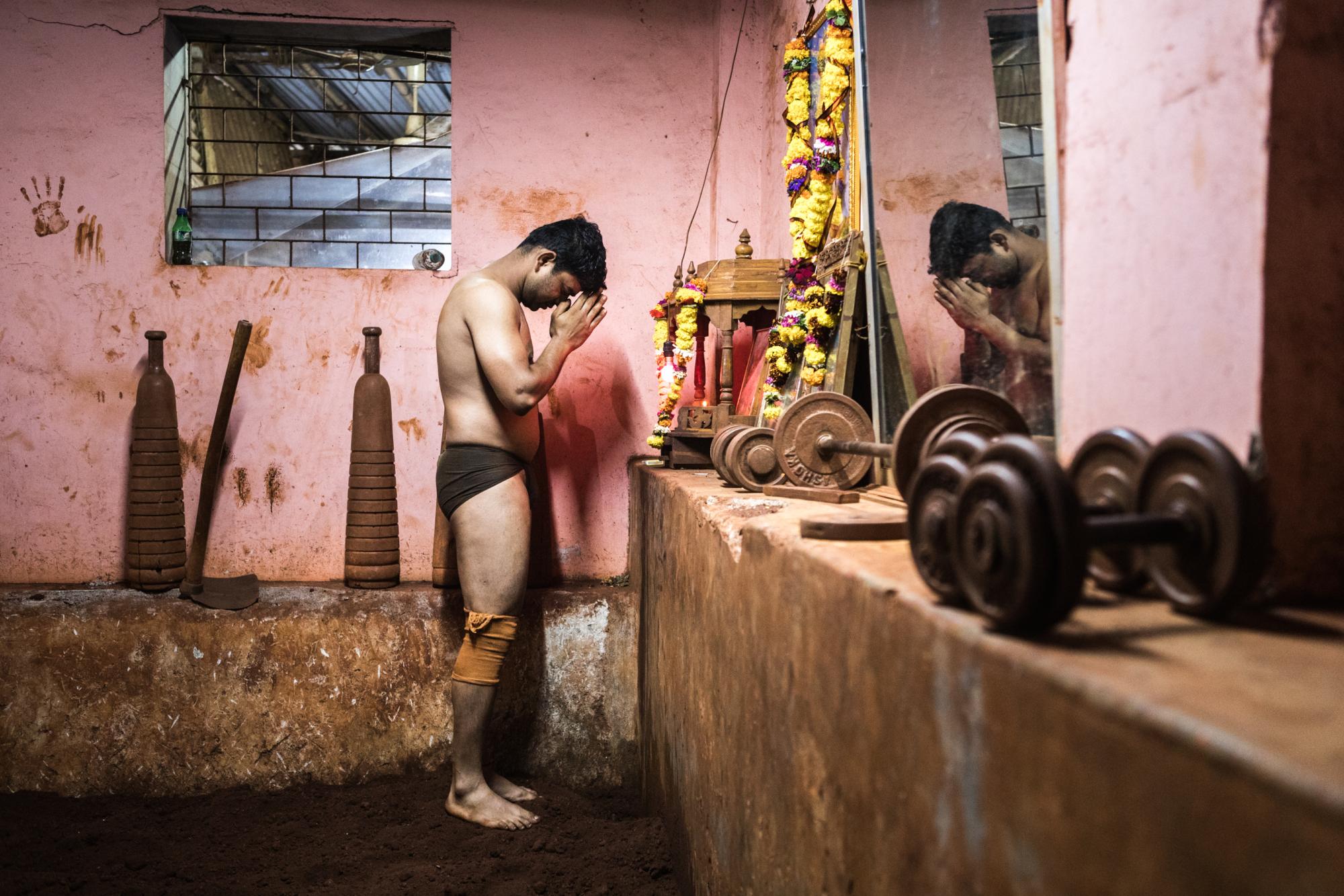 The strict practice of kushti is traditionally believed to drive young men towards a more positive and healthy lifestyle. More than just a sport, it’s a cultural heritage which embodies masculinity and represents, for some at least, a pathway out of poverty. Castes and differences are left at the door."