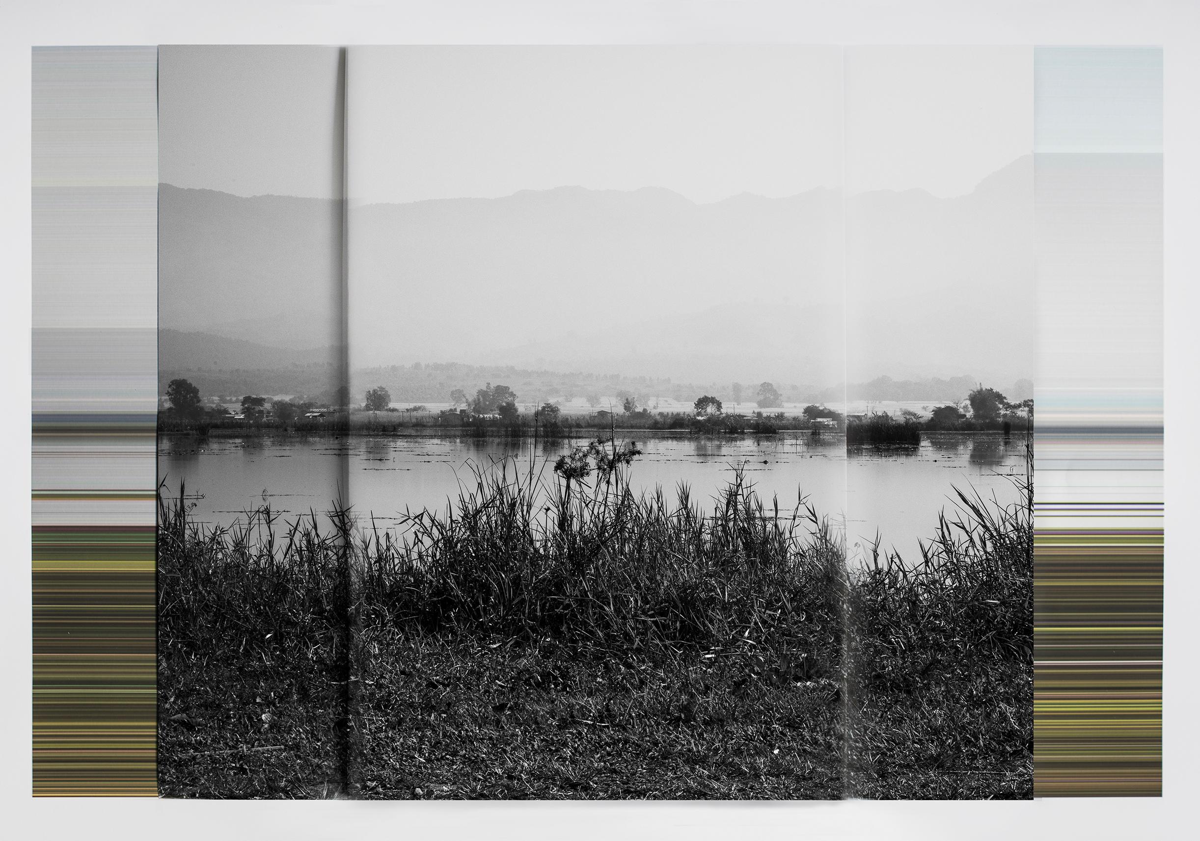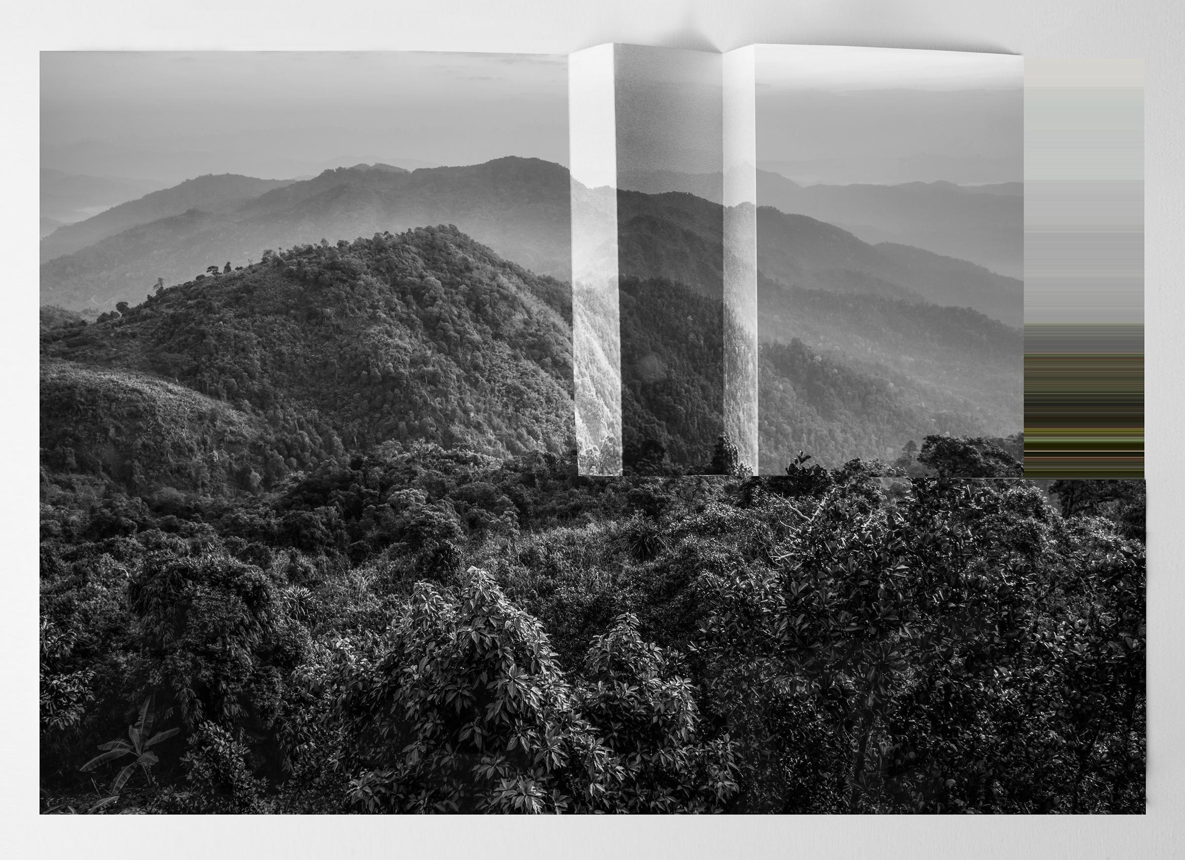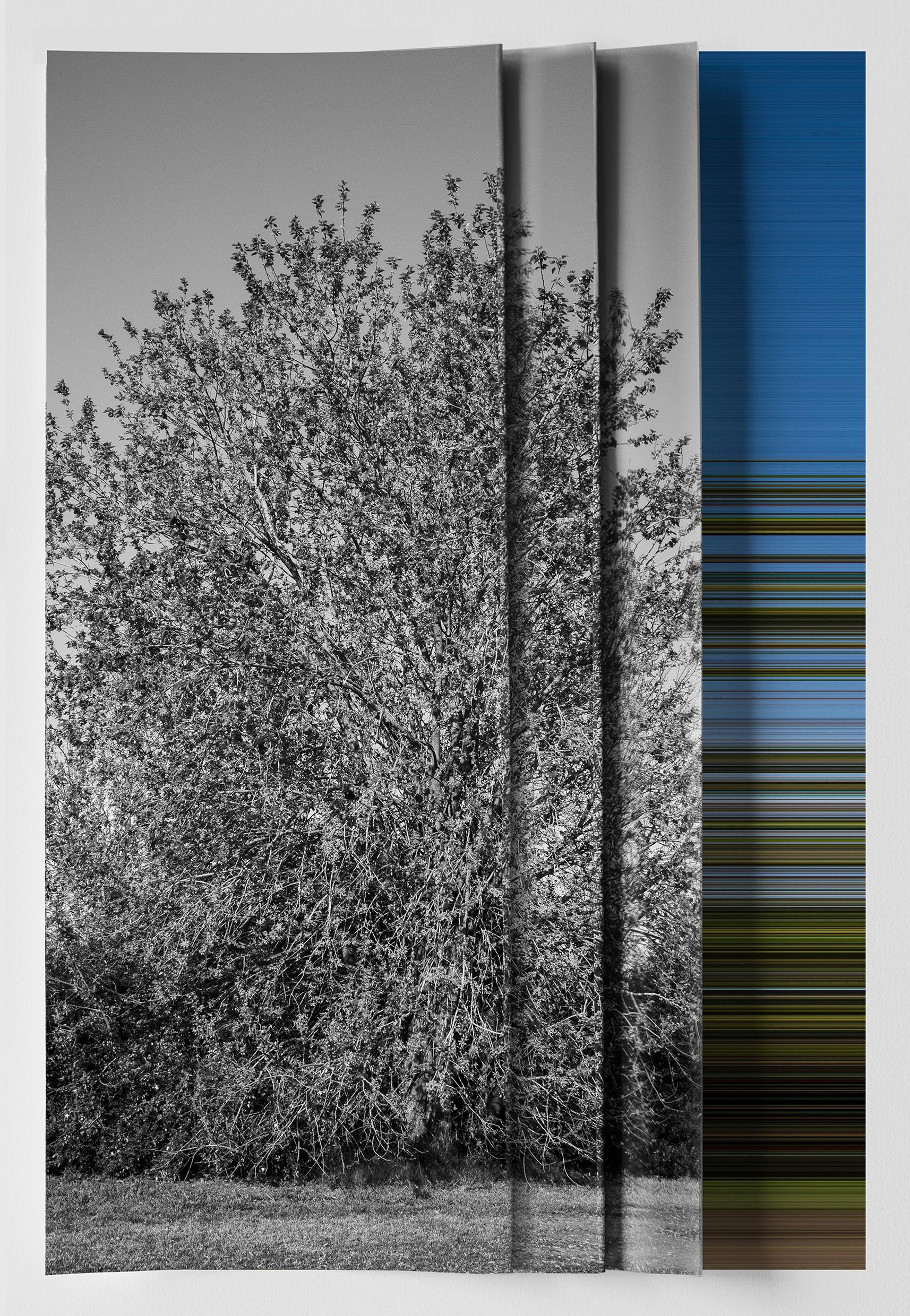 I am interested in the idea of nature as a cultural construct. In my series, the real and the manipulated overlap, resulting in a new landscape. In the foreground is a monochrome scene, and at the rear is a digital ‘backstage’. These images deal with observations such as the perception of colour through its absence, or the flatness of paper through its fold.