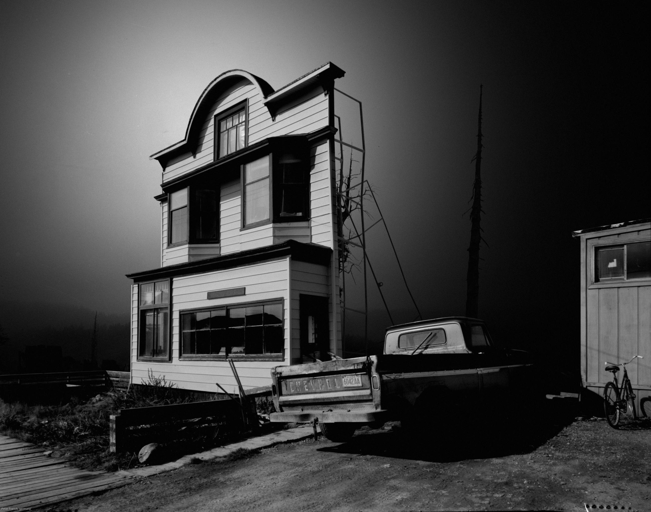The images shown here are facades; it’s uncertain what purpose they serve. Are they a film set or a training camp for special forces? Perhaps they are ruins that have been secured. In the end, the purpose doesn't matter, because the architecture has become an art space. Light and shadow shape this space and generate the stage. The pictures try to expand the boundaries of photography and dispense pure representation. Everything seems possible and stories emerge from the shadows into the bright light.