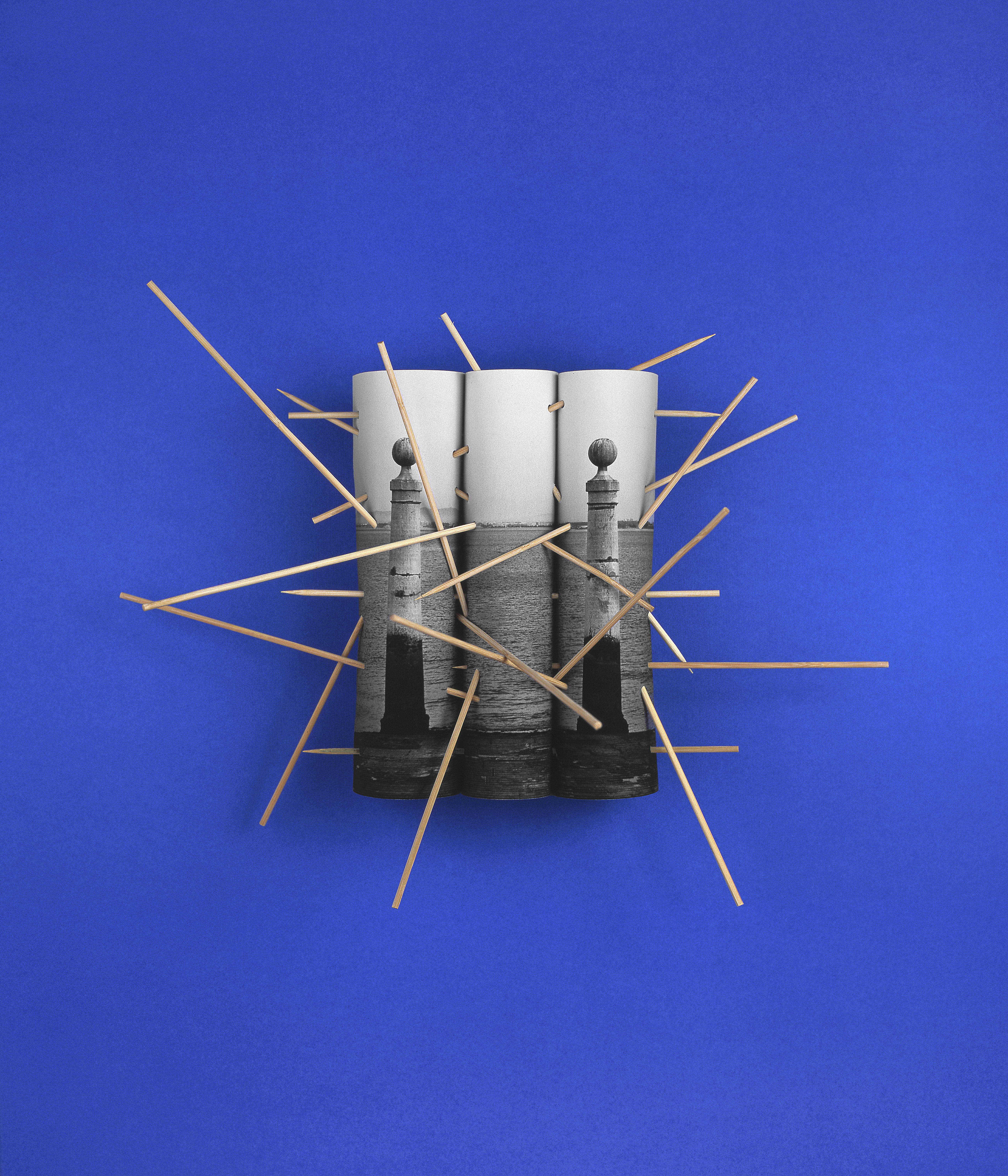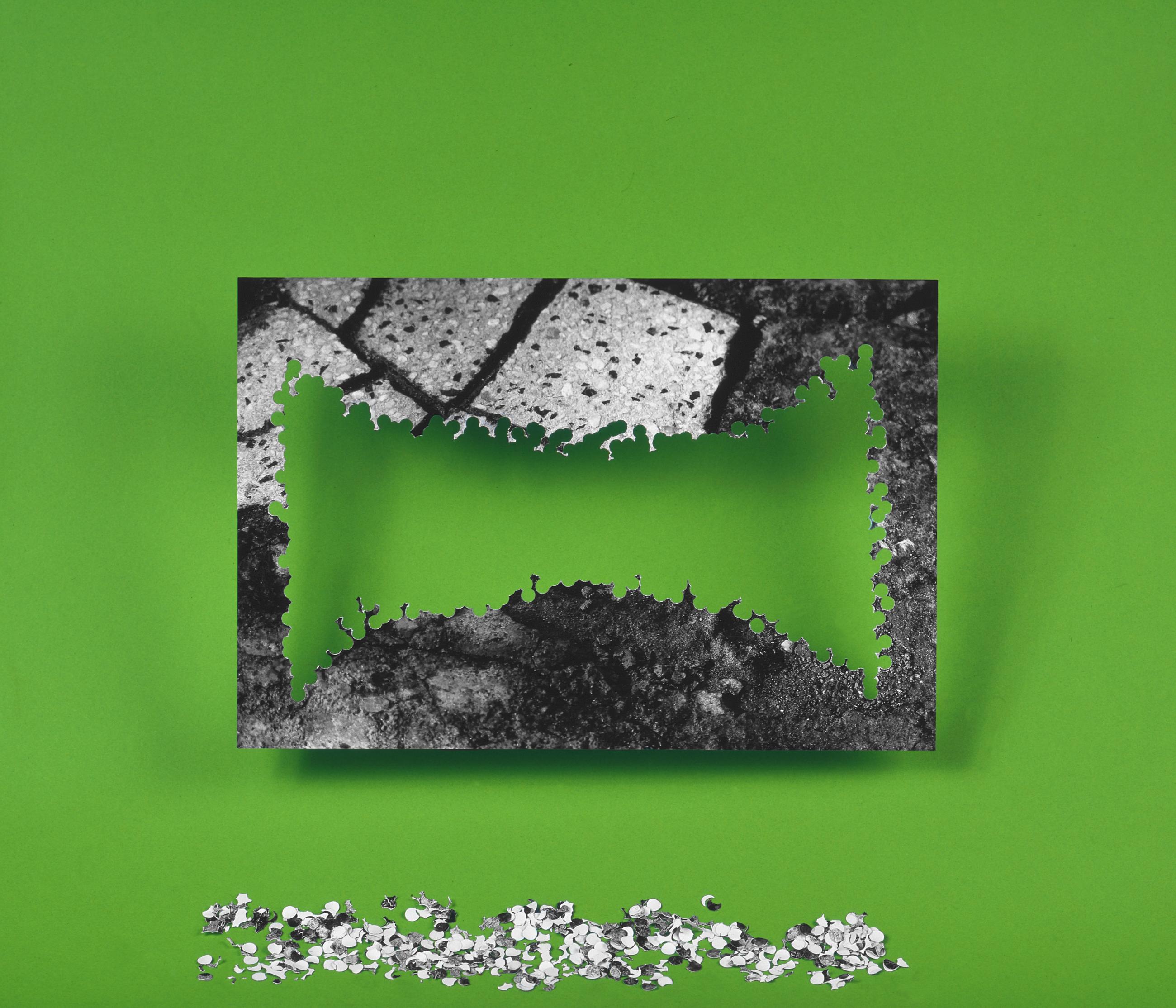 This work is part of a project where I use prints to create objects that I later photograph in my studio. I seek to create imaginary spaces that tell us something about urban clusters. Breaking all timelines, I play with the idea of ‘archaeological’ objects with a mind of their own. The initial images were shot digitally and printed with inkjet, and the final images were captured on 6x7in reversal film slides.