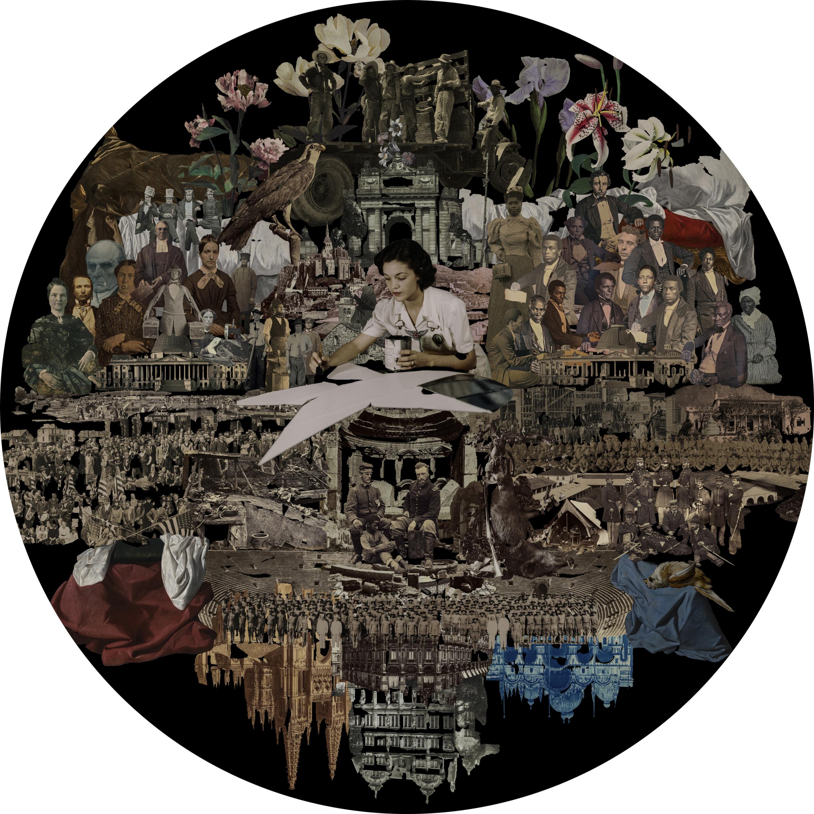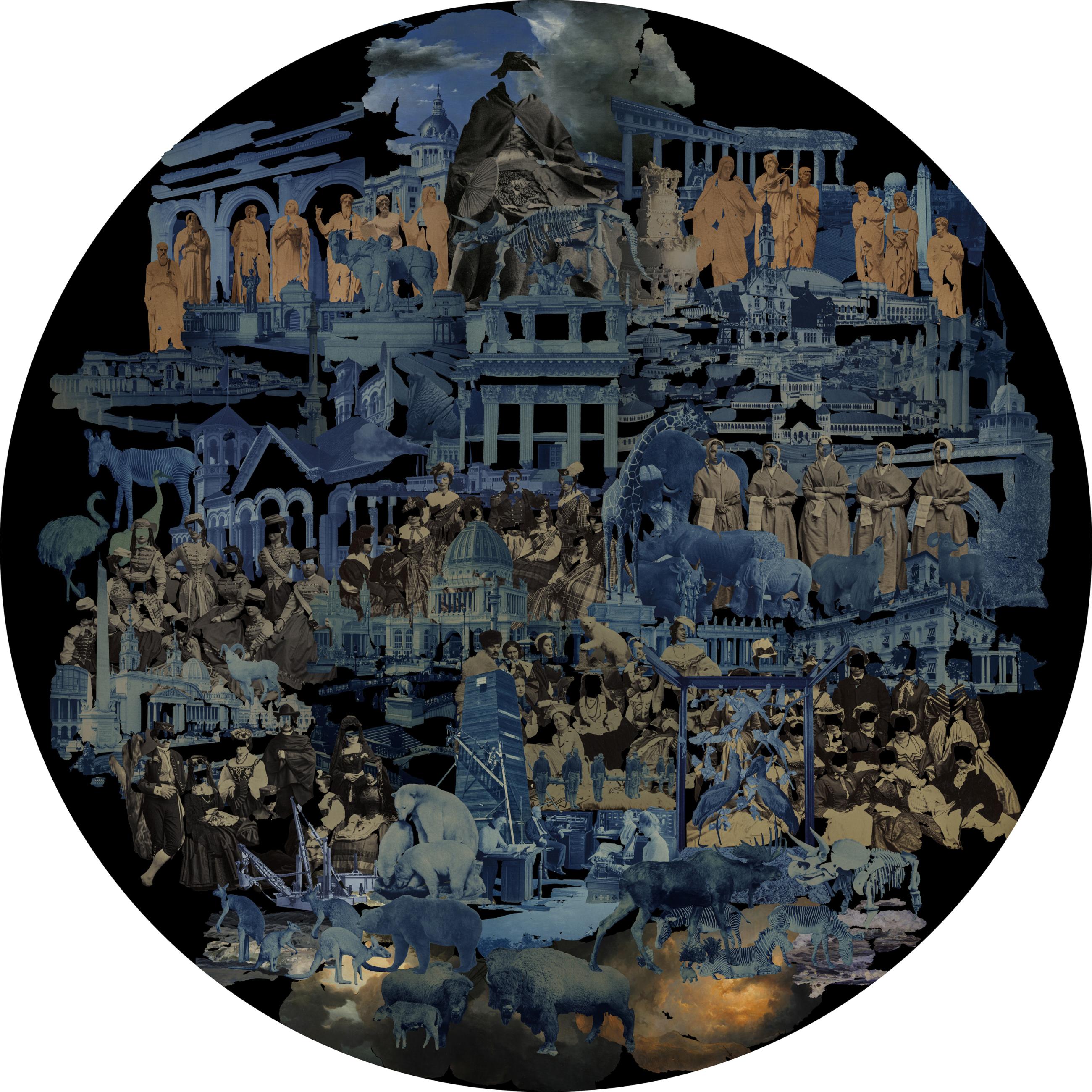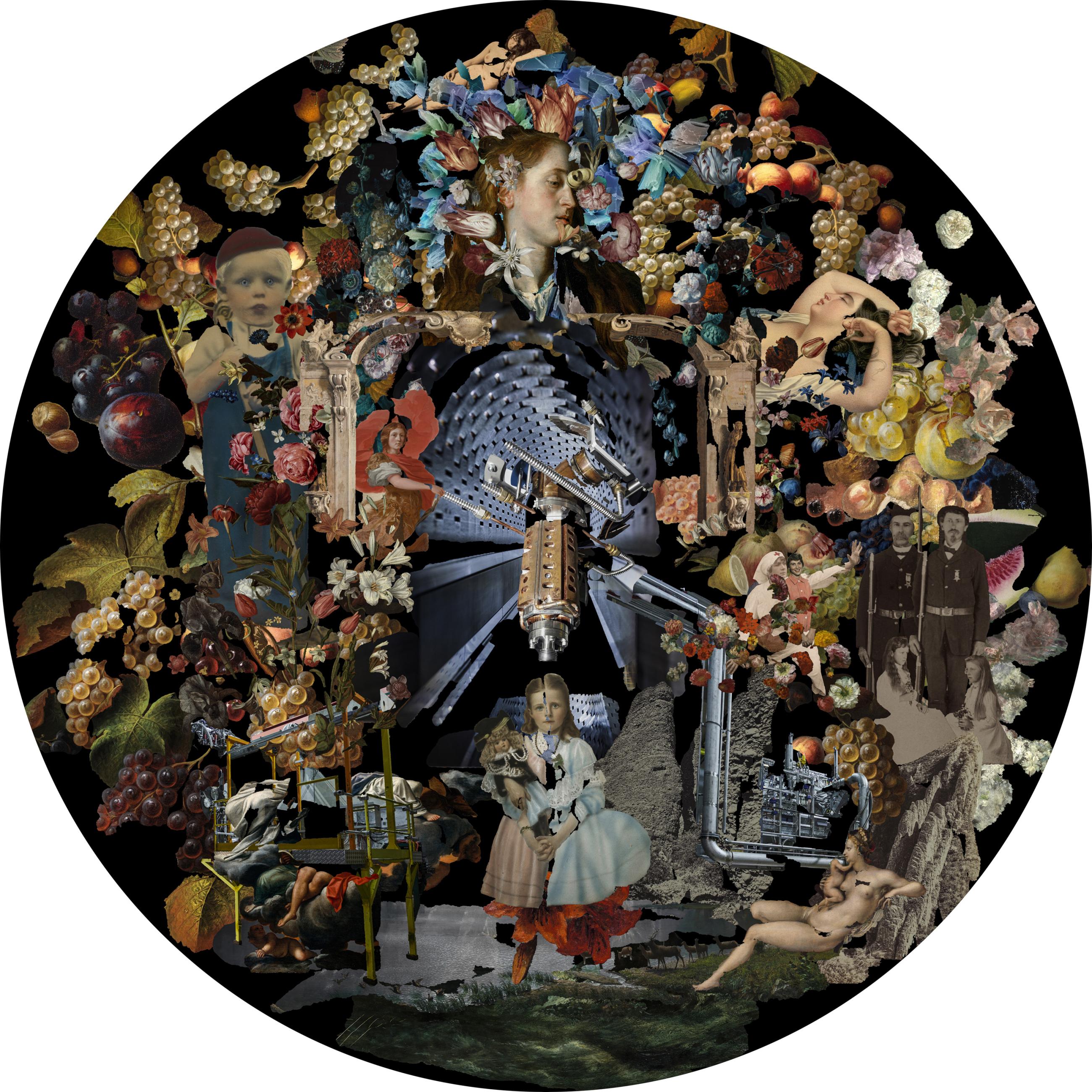 I am interested in the fate of canonised artistic, scientific and journalistic images and their potential to embody contemporary meanings. For my collages, I have used images from the open source collections at art museums, scientific institutions and image banks, whose archives may be considered iconic testimonies of the present and the past. The collages are grounded in my search for syntactic visual language connections pertaining to various periods, media and domains of visual culture. The collages make use of the ideas and technical codes established in visual communication that transcend the borderlines of ages, media and cultures:the codes that are so deeply ingrained in culture that they are used without thinking, and are understood through pre-existing schemas in the recipients’ minds.