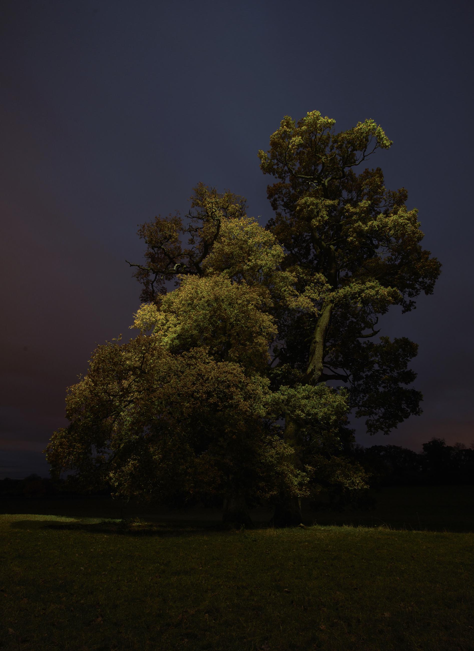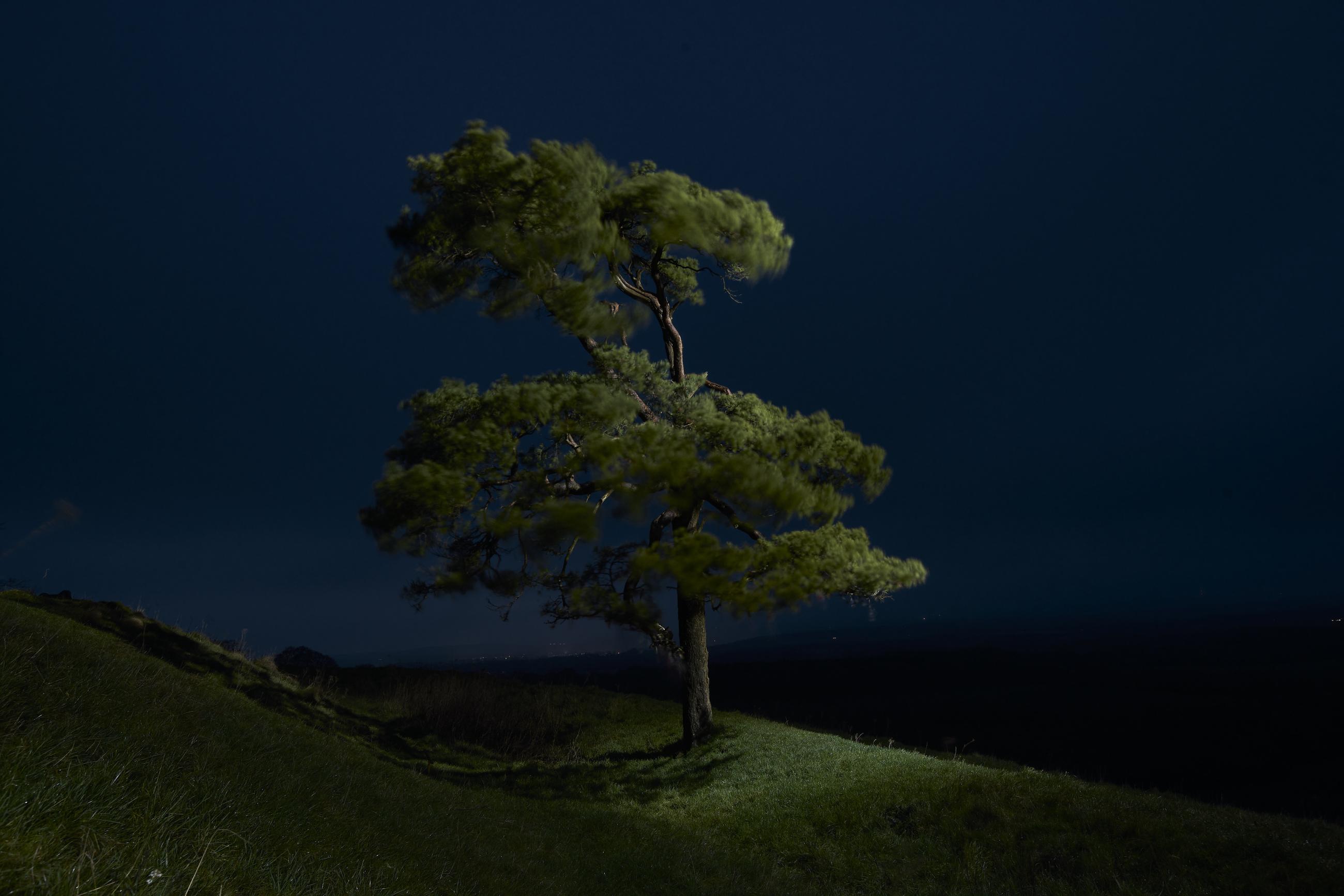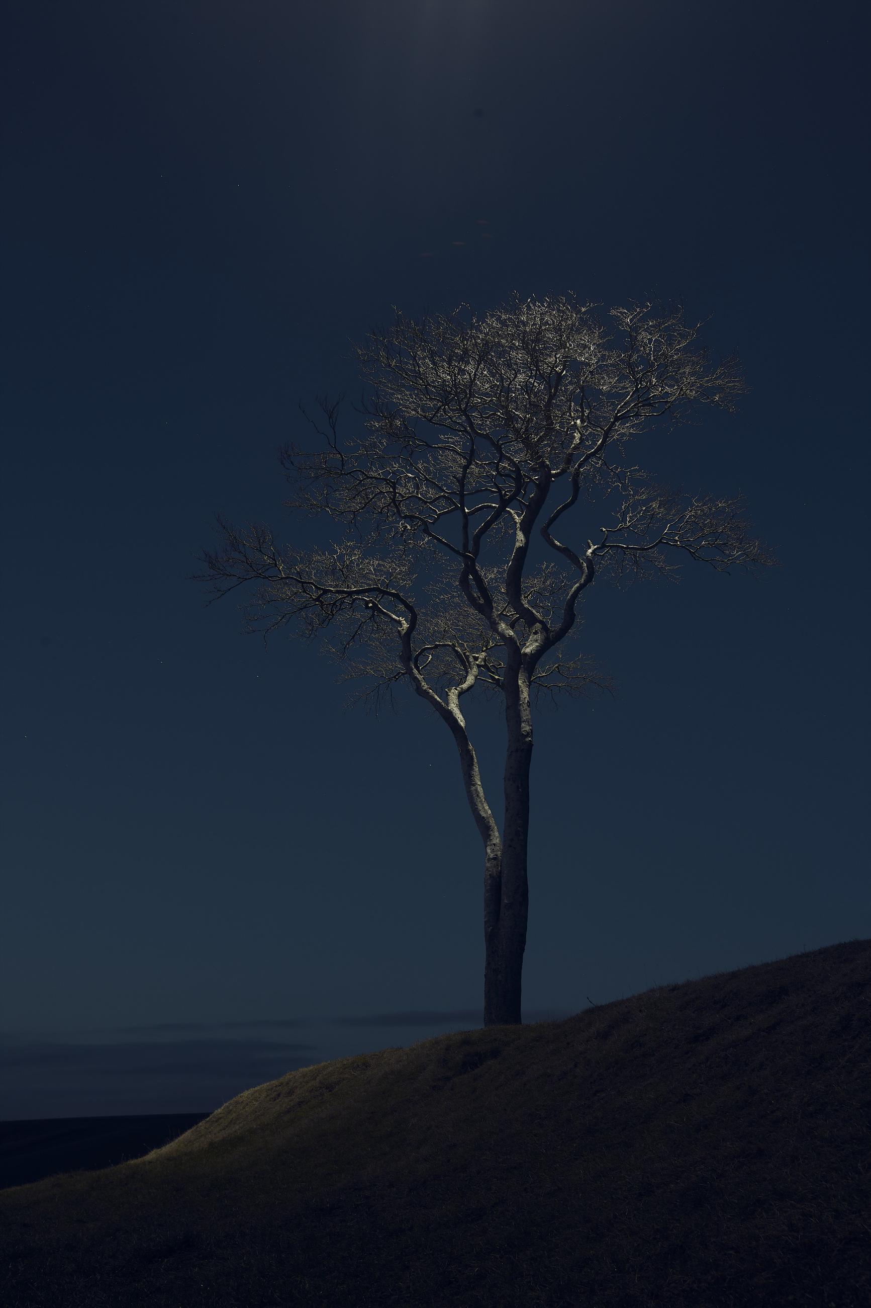 This project was born of the Covid-19 lockdowns, and the impact upon my work as a portrait photographer. Inspired by my home county of Wiltshire, where the distinctive landscape features many knolls with lone trees raised above the horizon line. Unable to photograph people, I turned to my love of trees. I wondered if it was possible to take a unique portrait of these quiet giants. I chose to photograph against dusk skies and lit the trees with drones to create an otherworldly impression. As lockdowns took hold, so did this project. I started looking into every field and up every hill for aesthetically interesting treescapes. While many people discovered the joys of walking in nature during the lockdowns, once the sun had set it was just me, the trees and the darkness, which was an experience that at first terrified me but with time I began to relish.