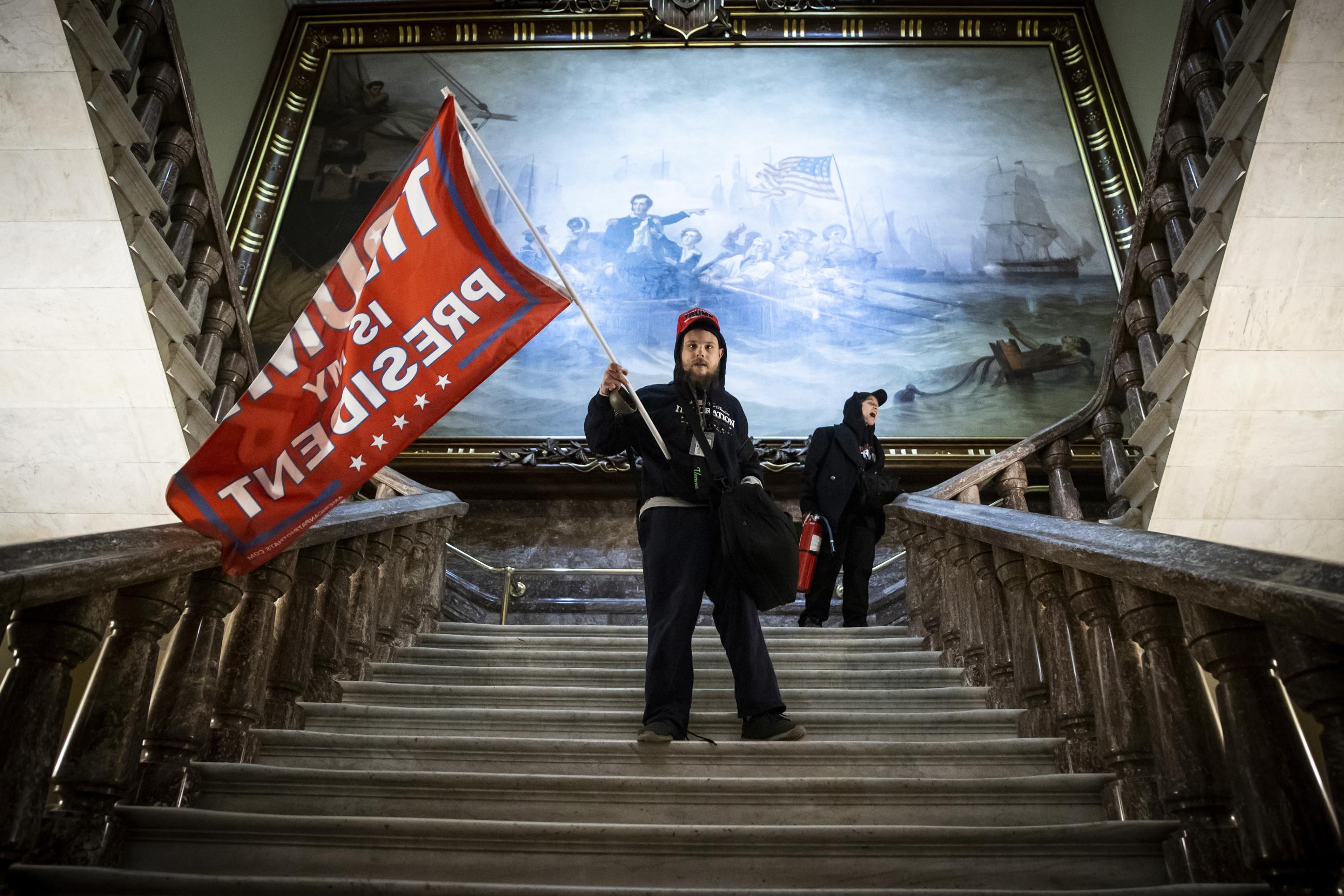 Following a ‘Save America’ rally held by President Donald Trump, a mob of thousands of his supporters descended on the US Capitol and fought their way into the building on 6 January 2021. Members of the mob were called to action by Trump and urged to “fight like hell” after months of disinformation disputing the results of the 2020 presidential election.
