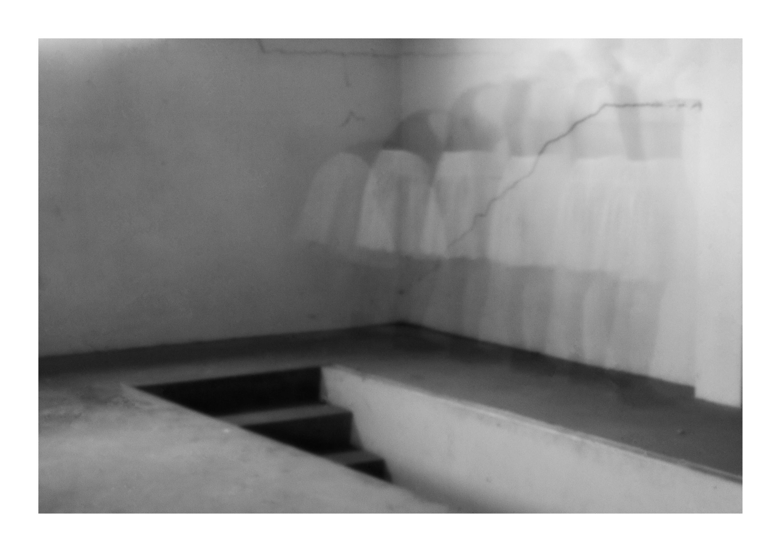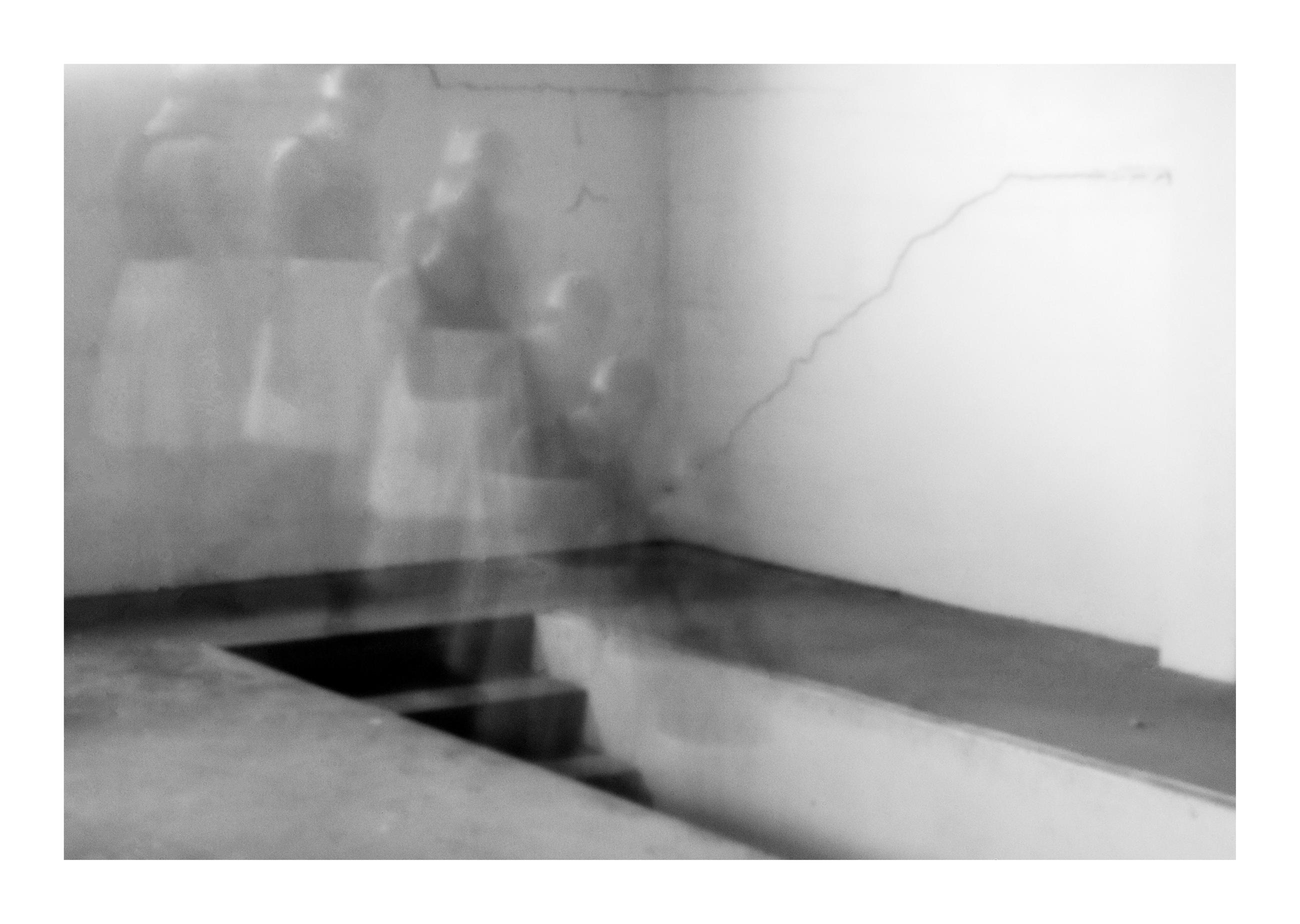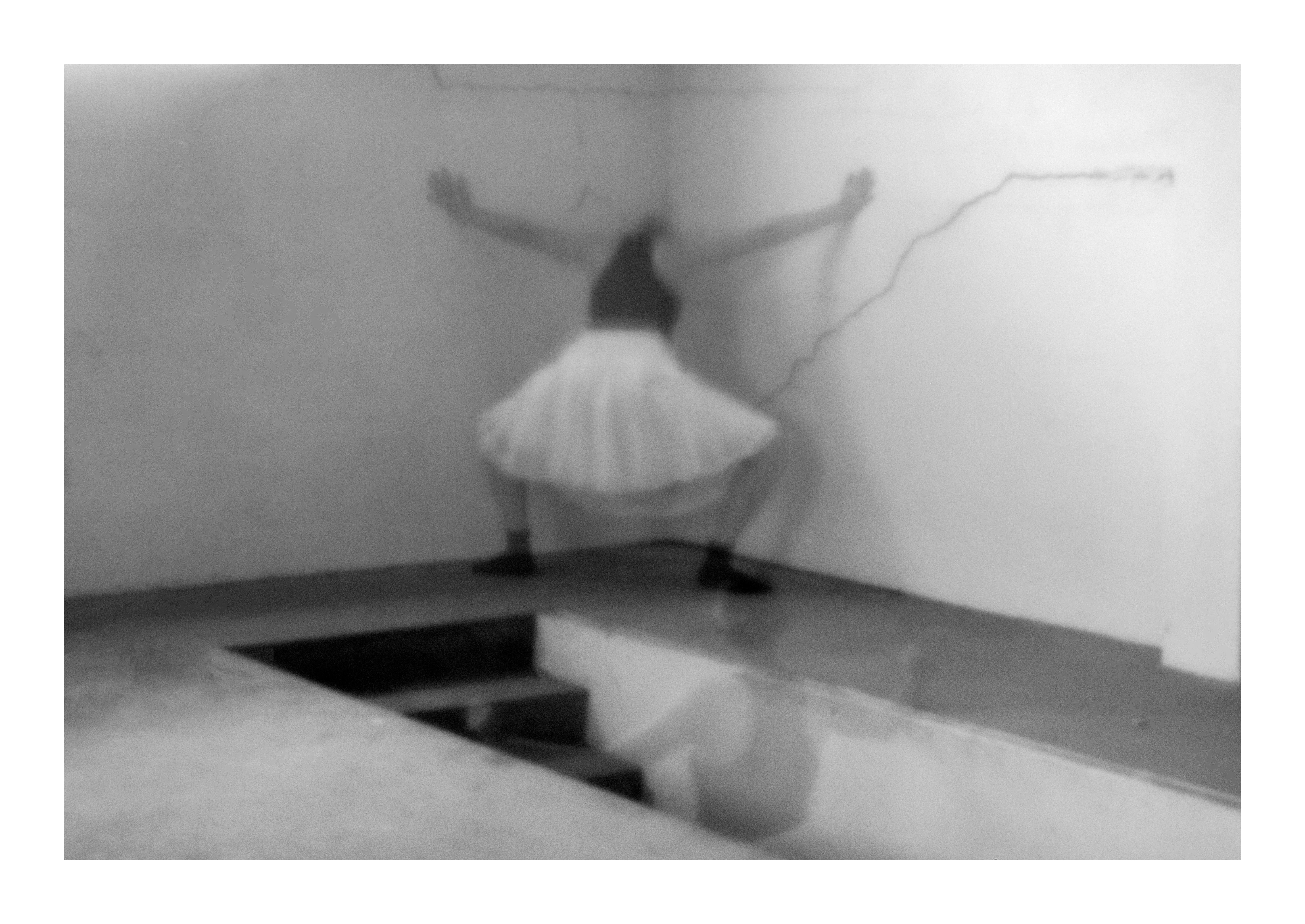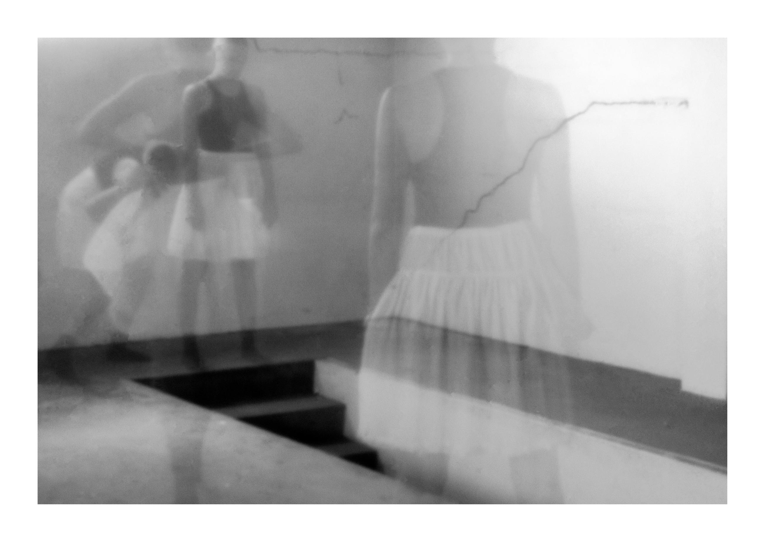 Angela Stoll draws on her experience as a dancer to explore dance movements through photography and hand-made textiles. Working across both colour and black and white photography, Stoll uses the unpredictable nature of the pinhole camera to investigate the connection between the body, memory, and clothing. The use of long and multiple exposures captures slow movements, revealing a motion blur that records Stoll’s own dance movements as an evolving narrative of the body, tactility, and the spatial relationship with time.