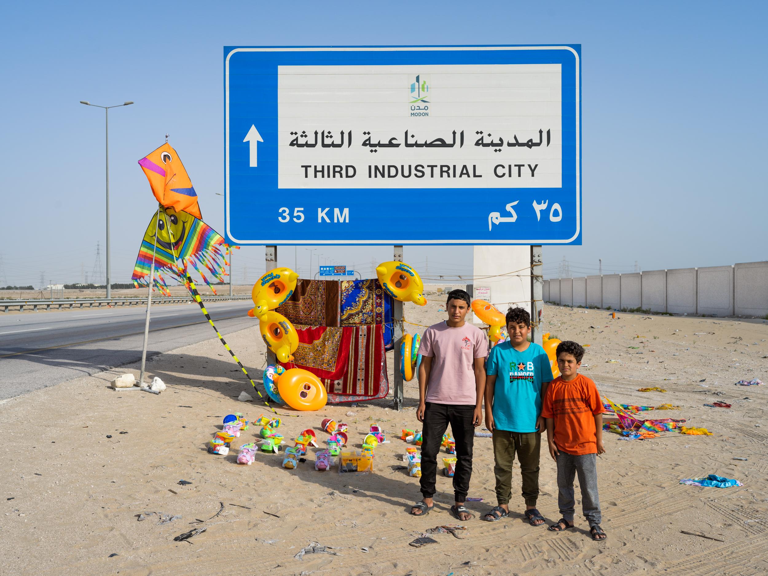 Three Syrian boys selling beach toys. Saudi Arabia is a very industrial country. When the industry isn’t oil, it is chemicals or materials like concrete that are used in urban development. It is unavoidable, even near the beach.
